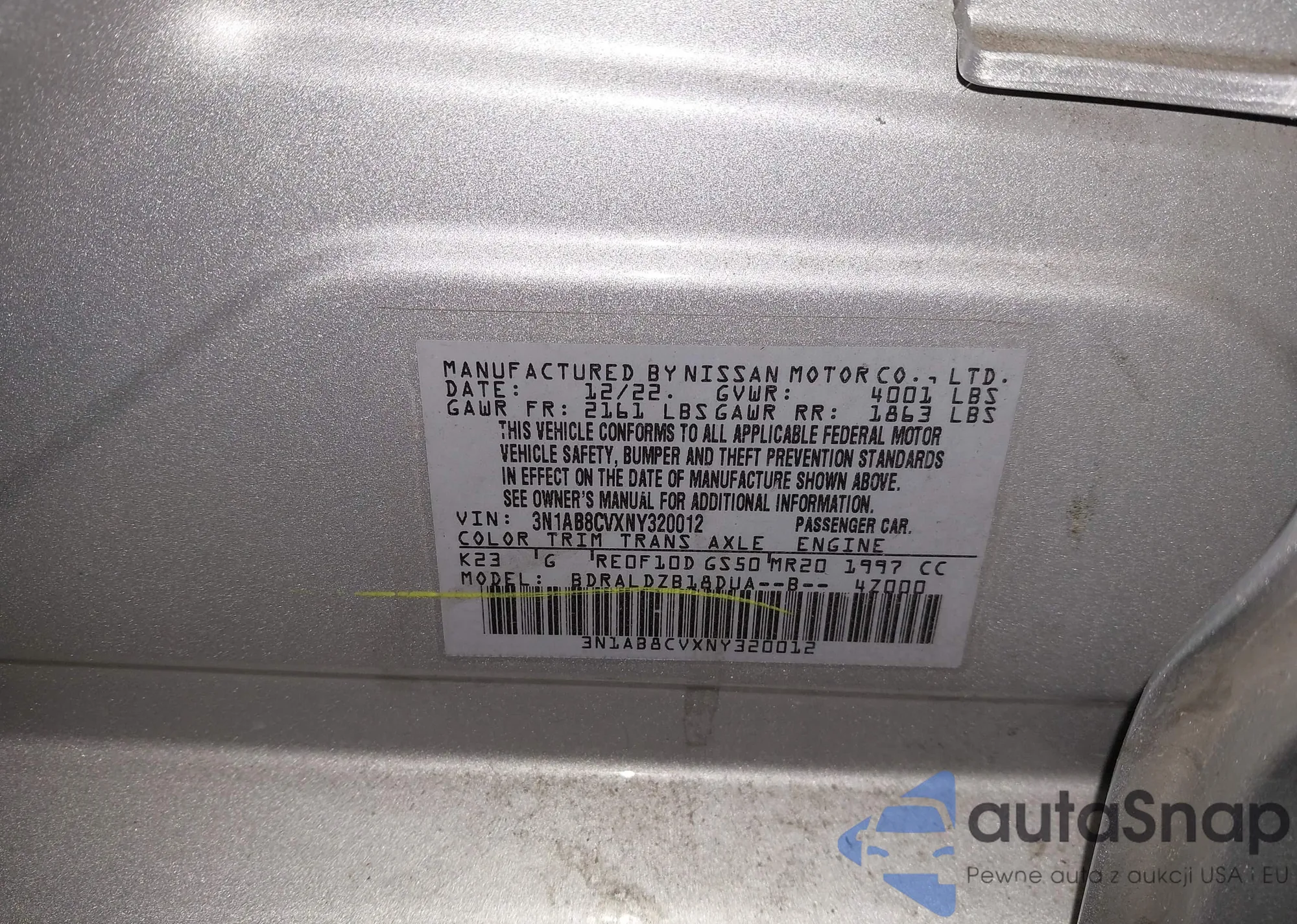 • VIN 3N1AB8CVXNY320012