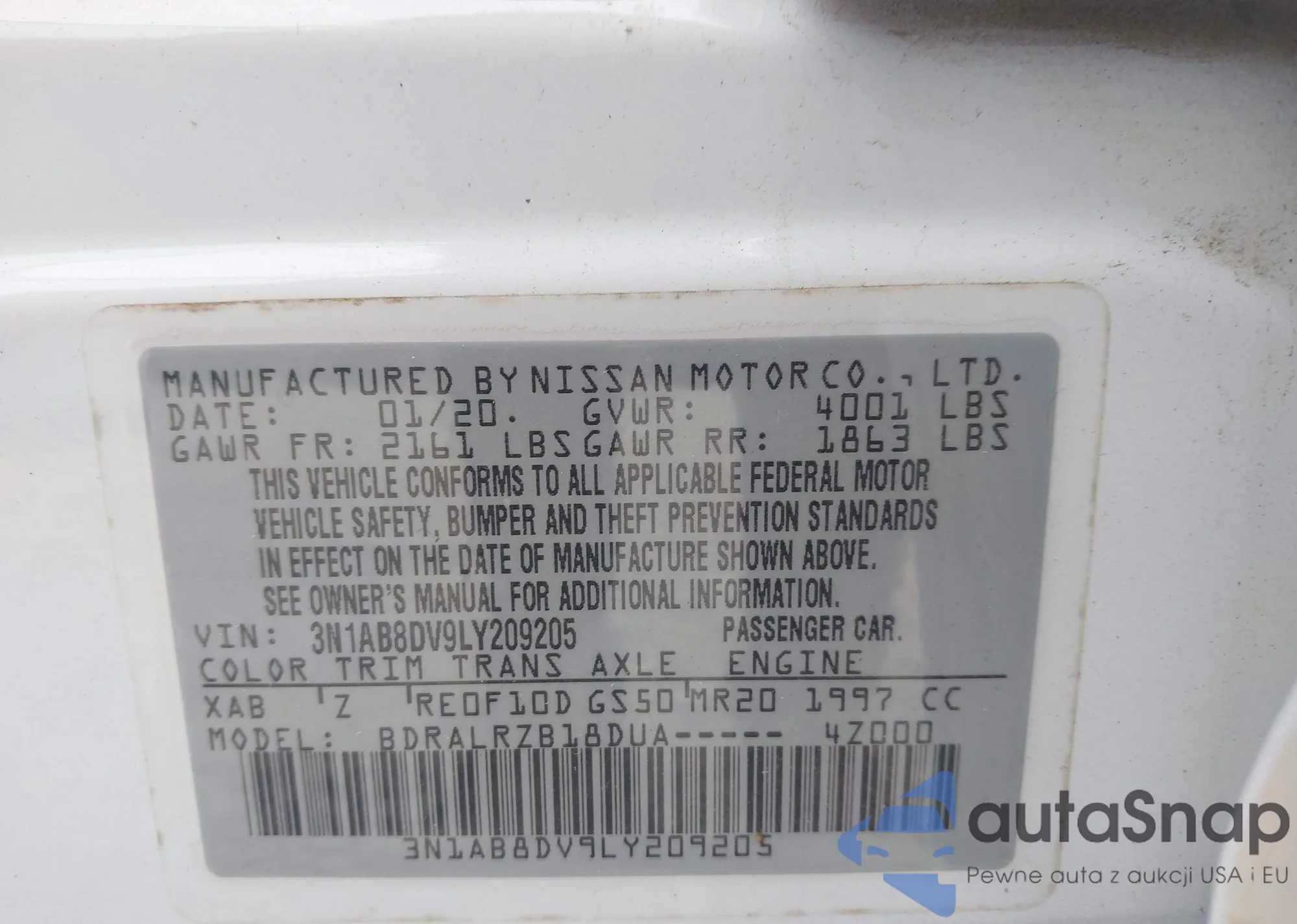 Kup Nissan Sentra VIII (B18) z USA