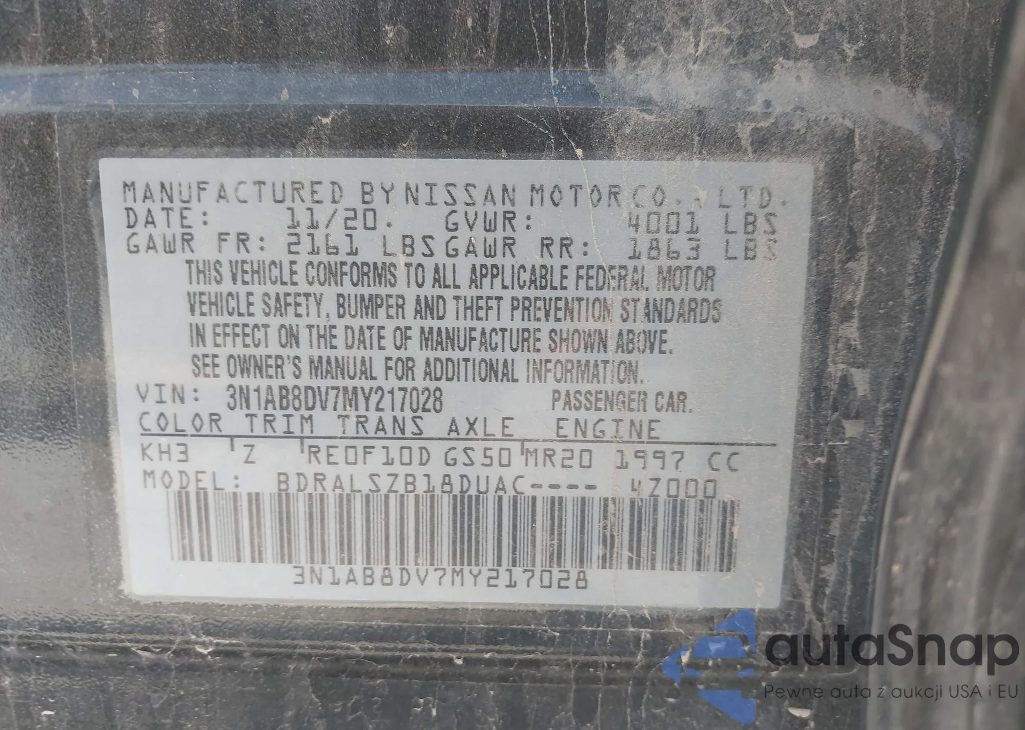 Kup Nissan Sentra VIII (B18) z USA