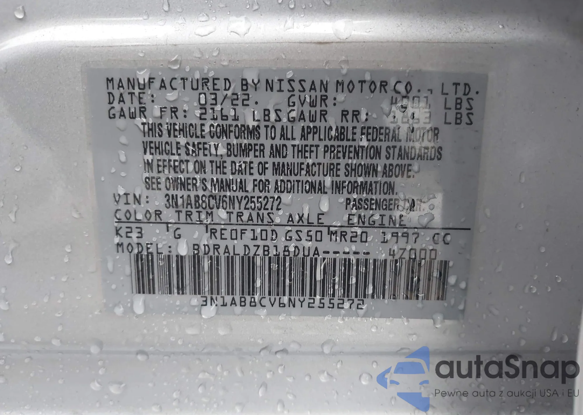 • VIN 3N1AB8CV6NY255272