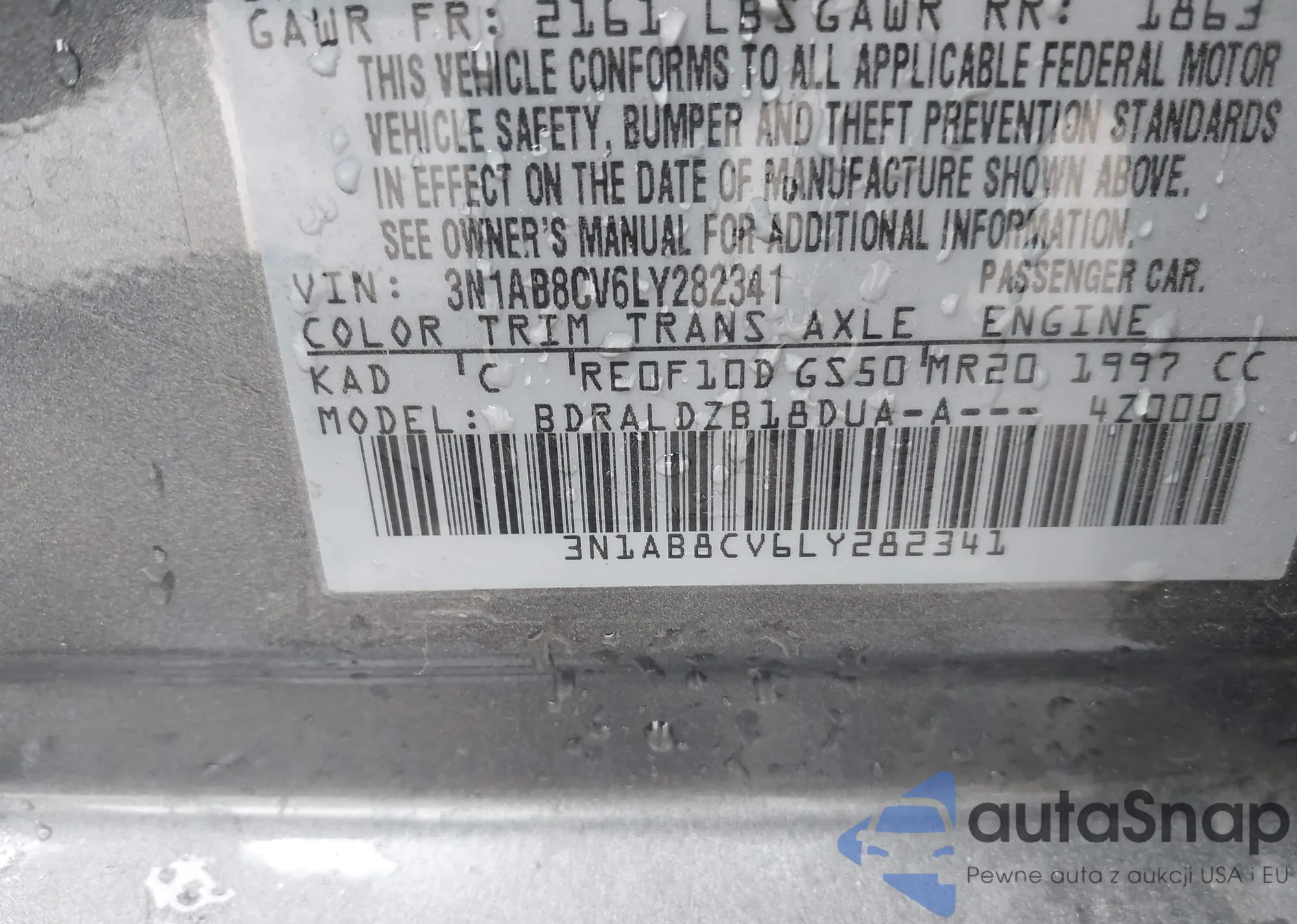 • VIN 3N1AB8CV6LY282341