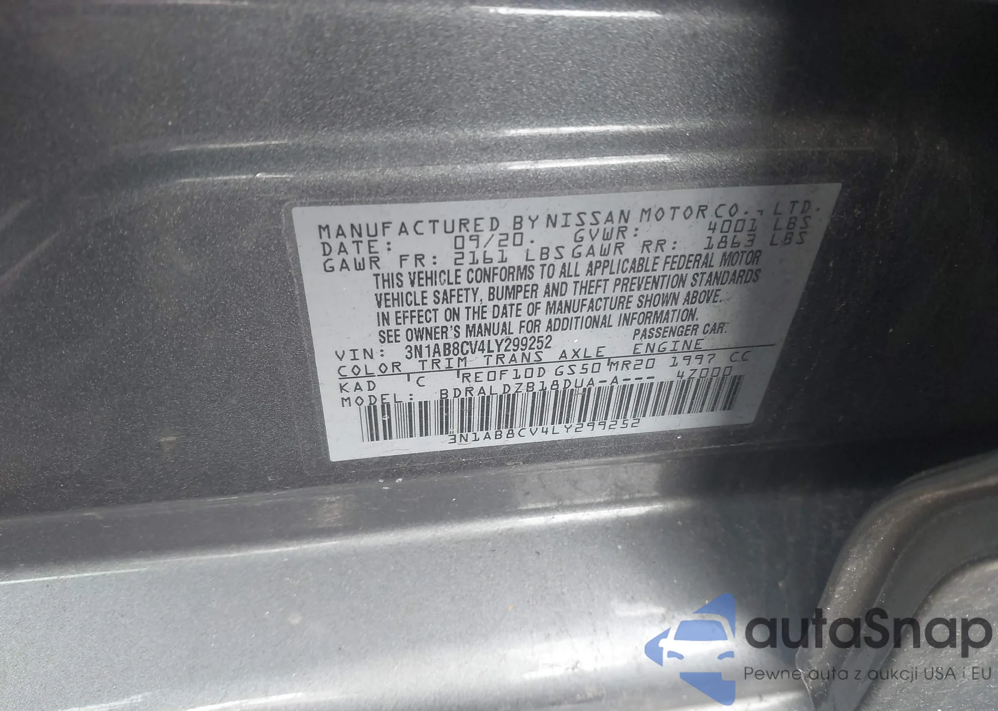 • VIN 3N1AB8CV4LY299252