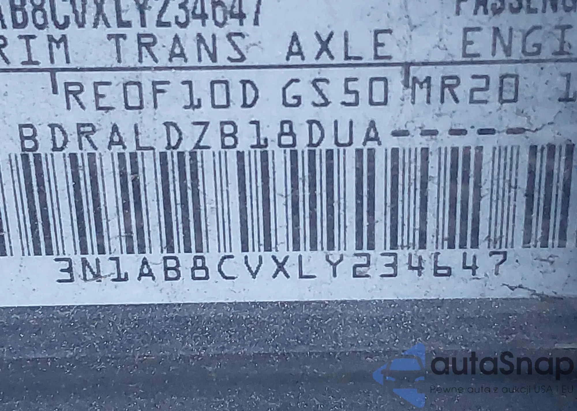 • VIN 3N1AB8CVXLY234647