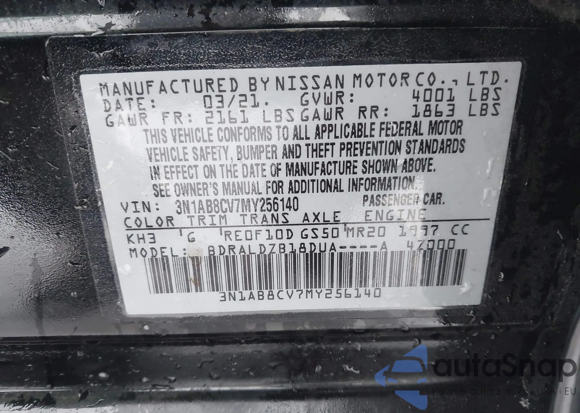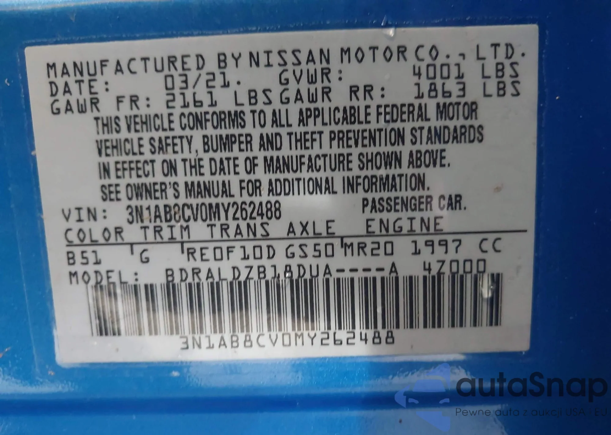 Kup Nissan Sentra VIII (B18) z USA