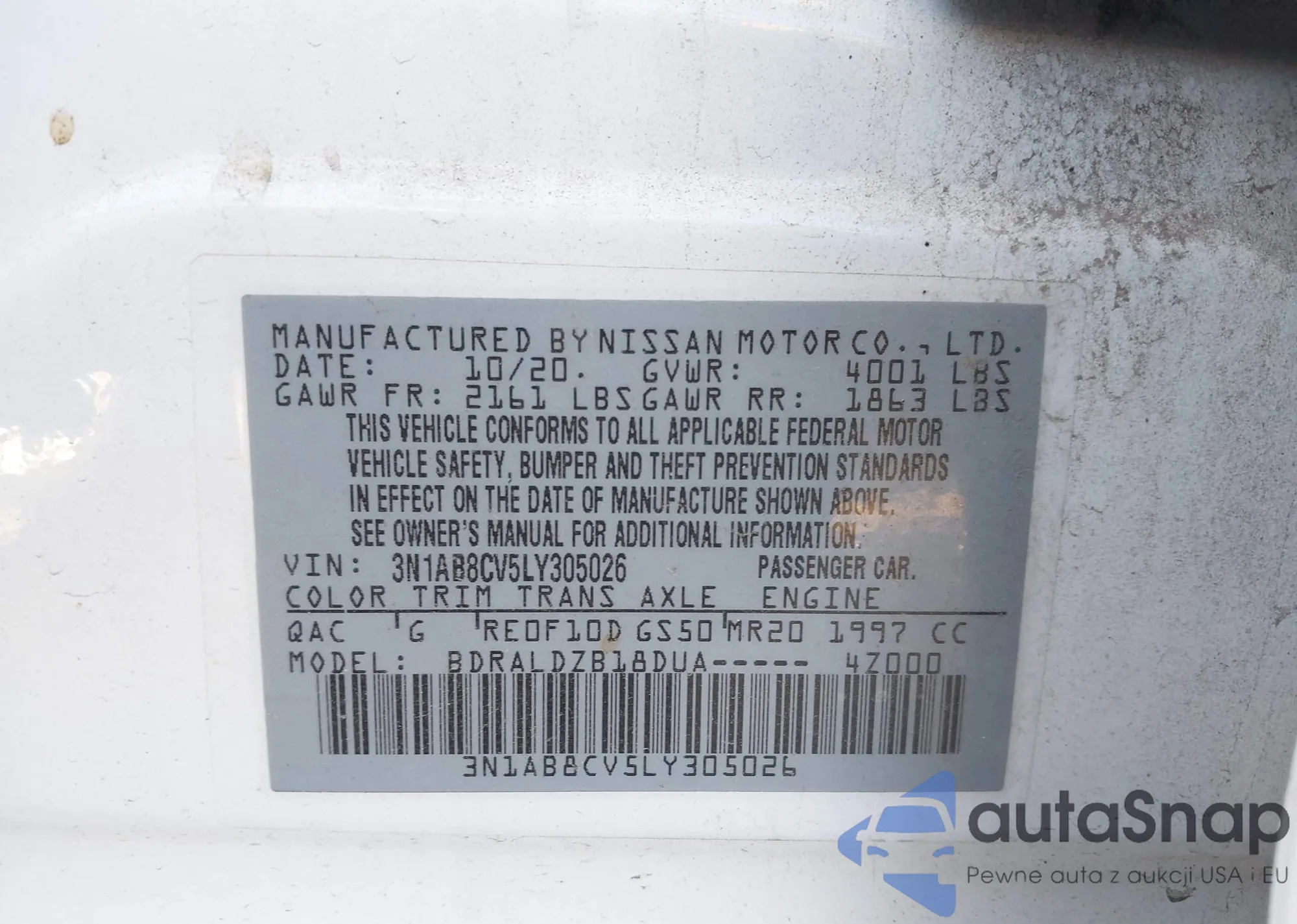 • VIN 3N1AB8CV5LY305026