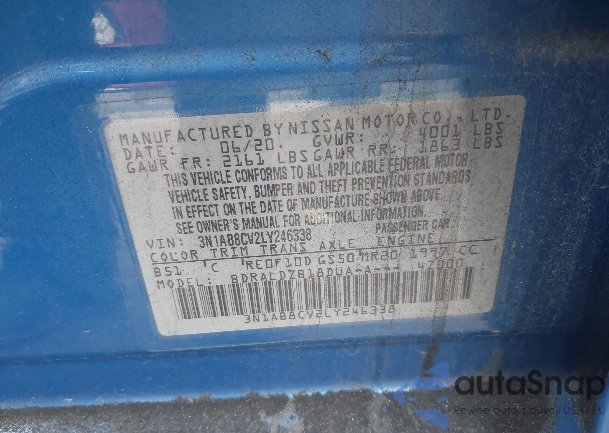 • VIN 3N1AB8CV2LY246338