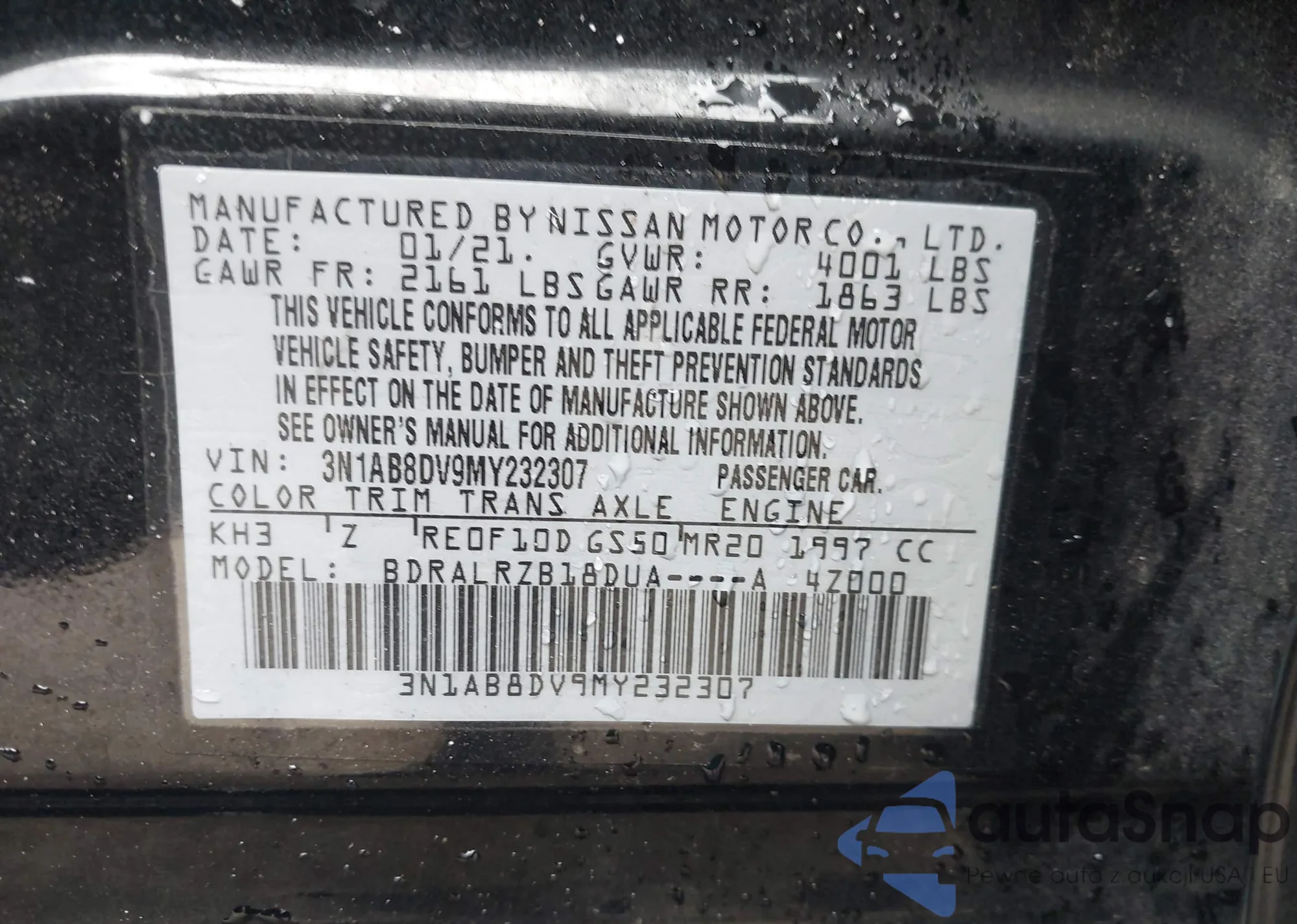 Kup Nissan Sentra VIII (B18) z USA