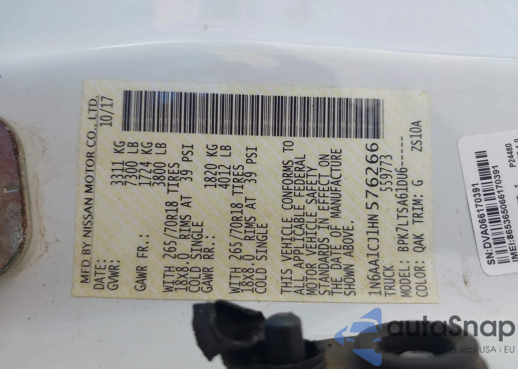LOT: 43117881 VIN: 1N6AA1CJ1HN576266