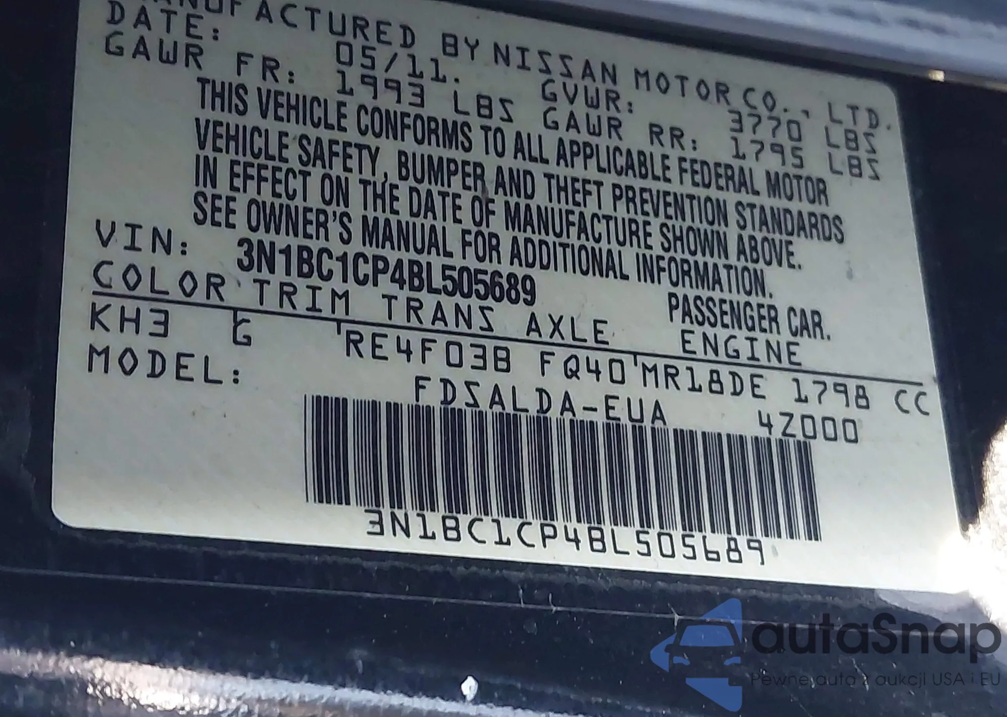 • VIN 3N1BC1CP4BL505689