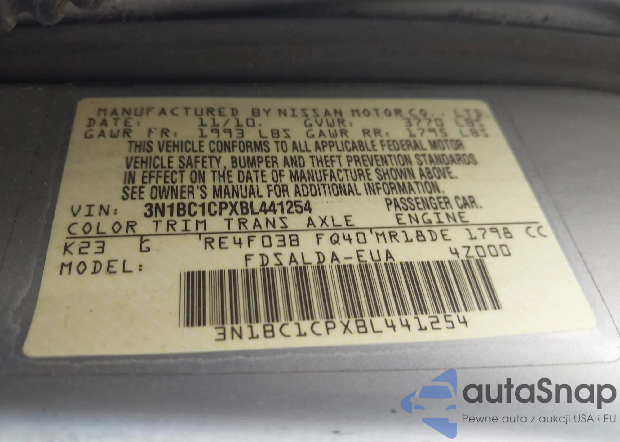 LOT: 44170776 VIN: 3N1BC1CP4BL505689