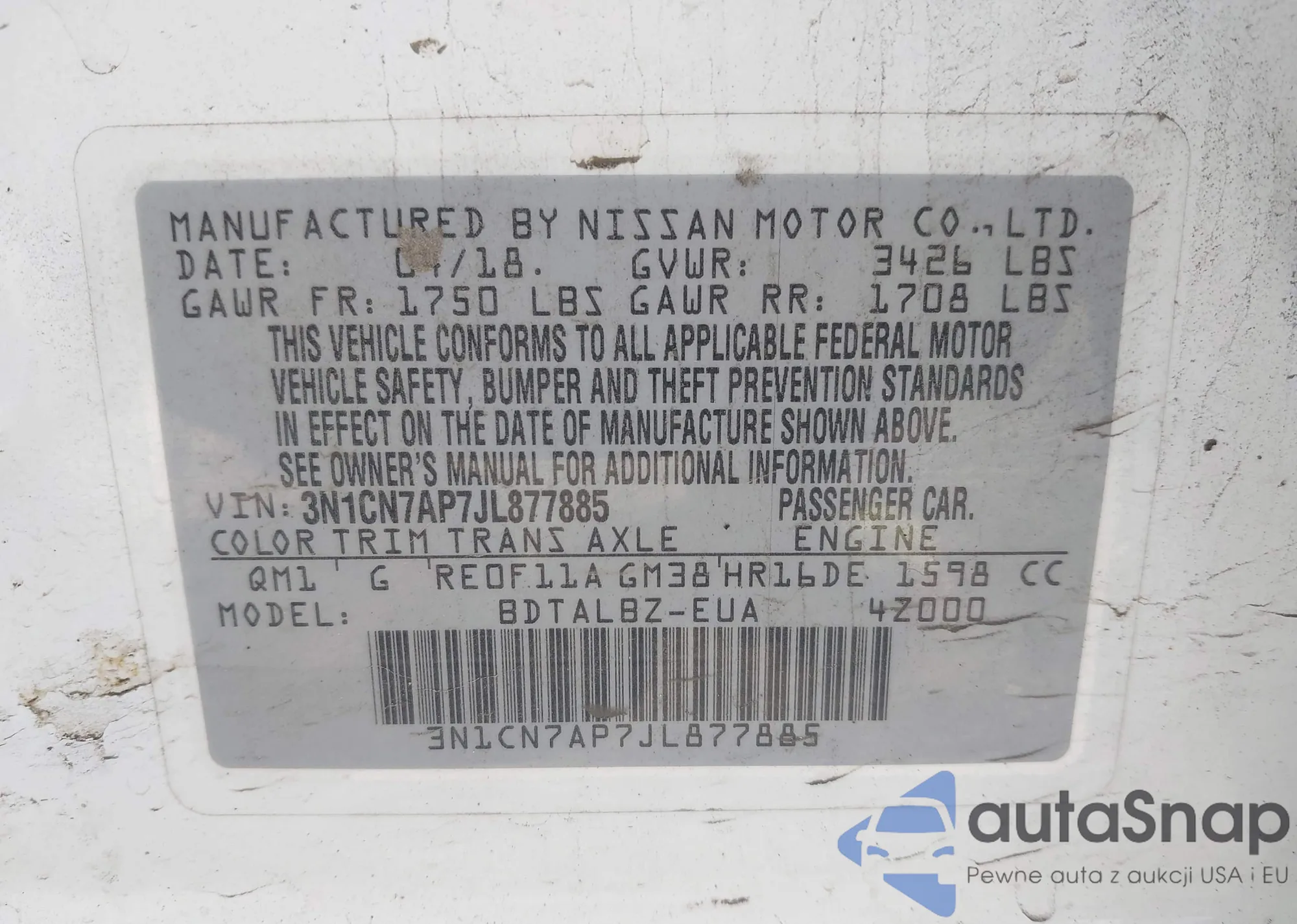 • VIN 3N1CN7AP7JL877885