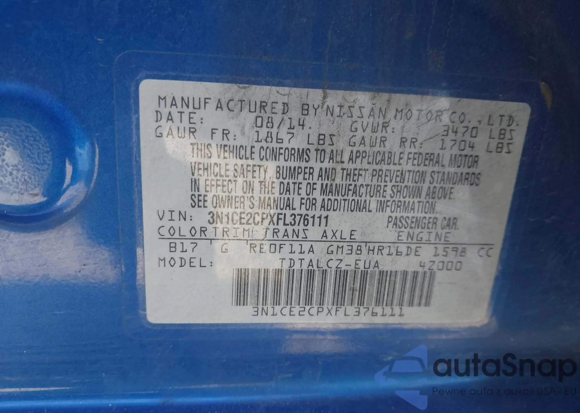 • VIN 3N1CE2CPXFL376111