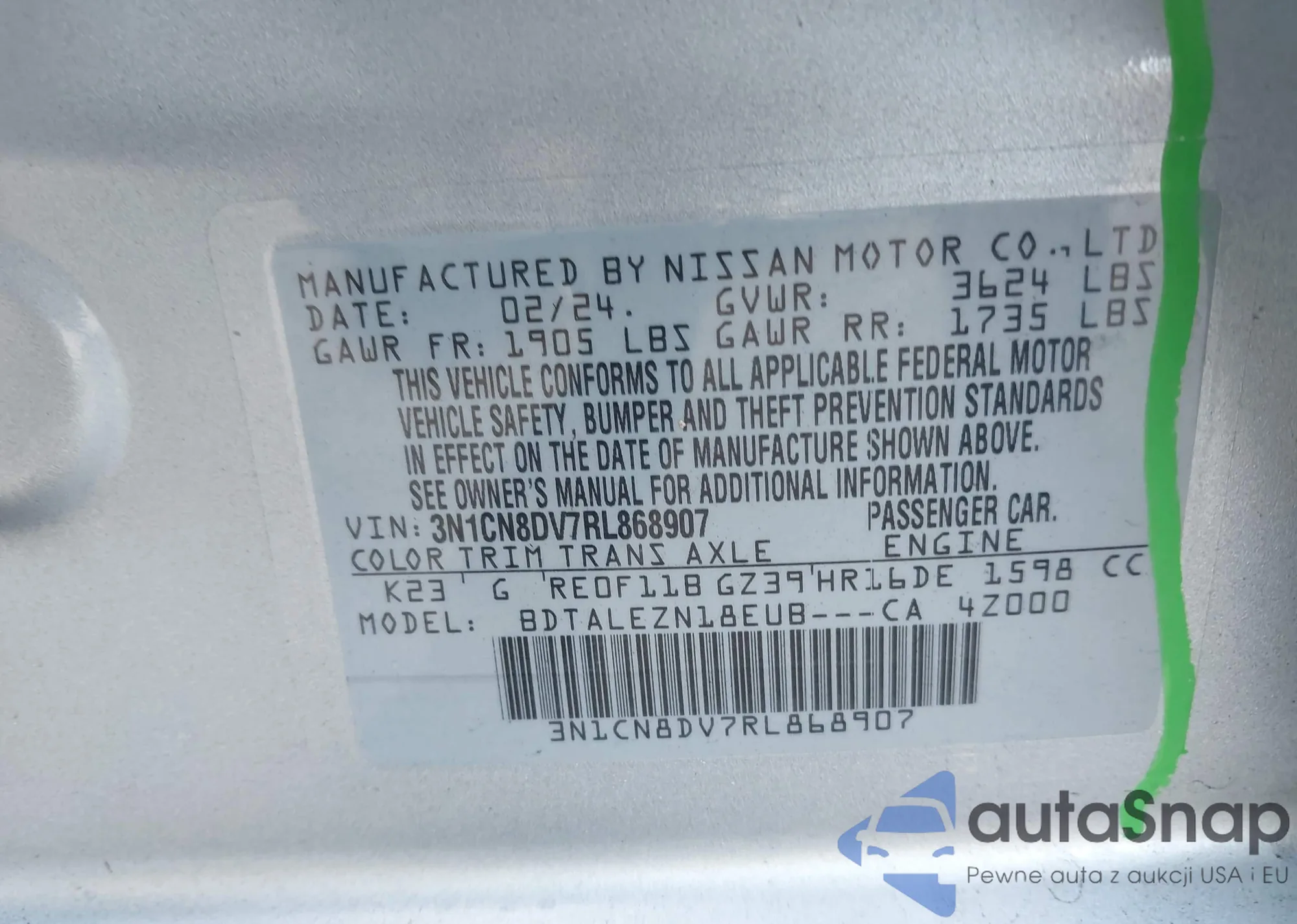 • VIN 3N1CN8DV7RL868907