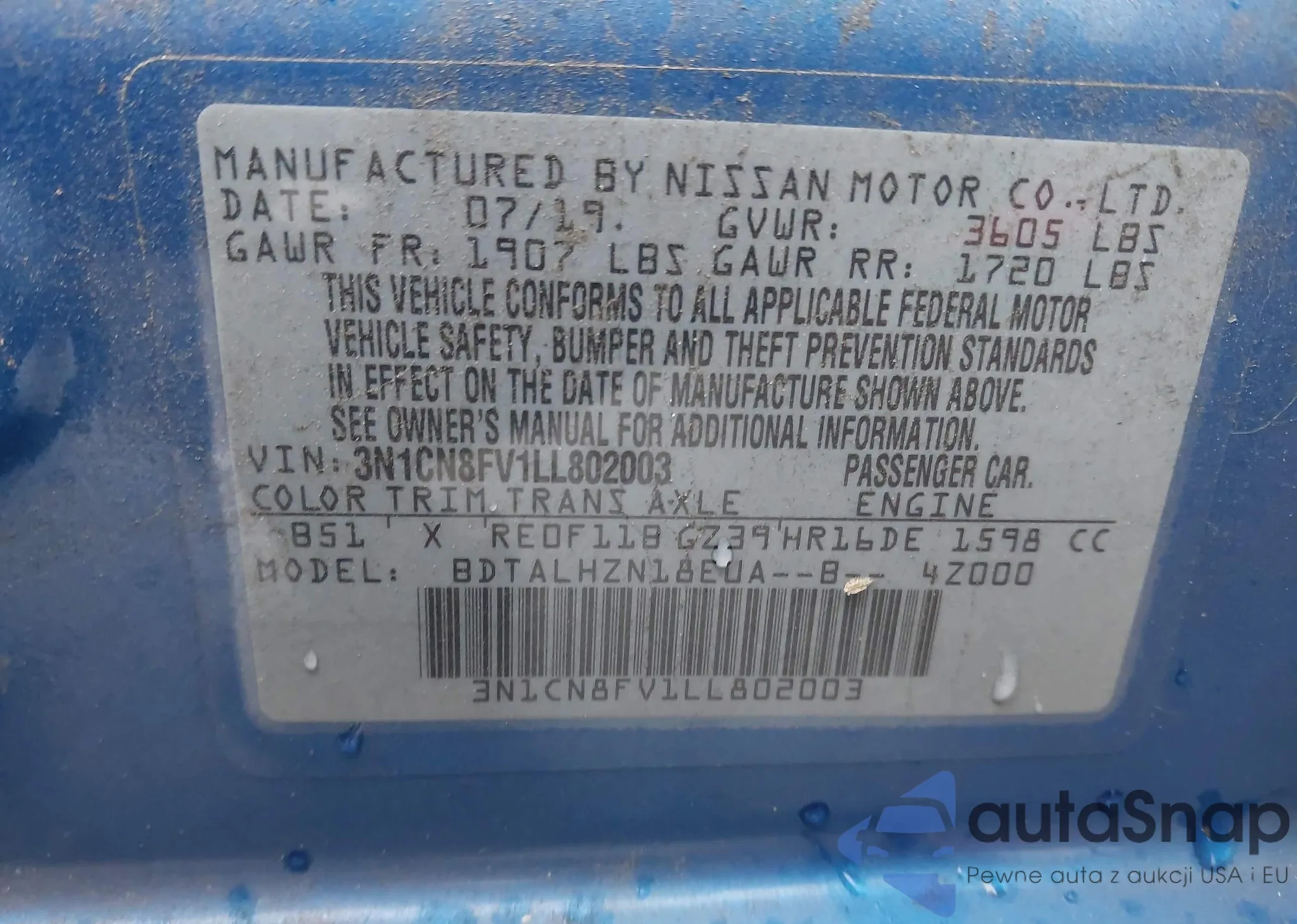 • VIN 3N1CN8FV1LL802003