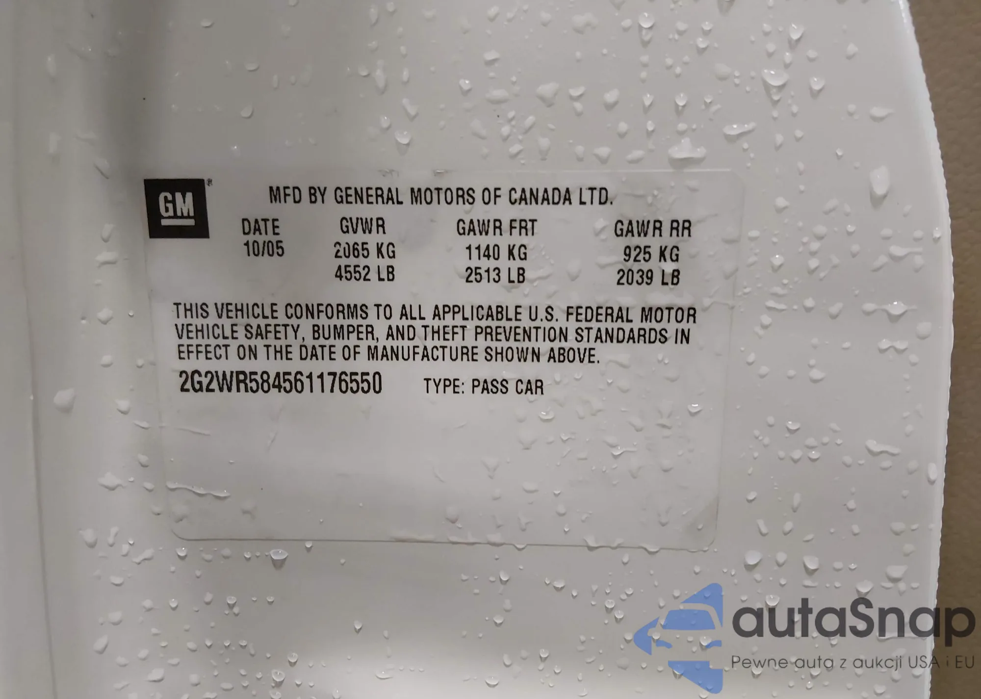 • VIN 2G2WR584561176550