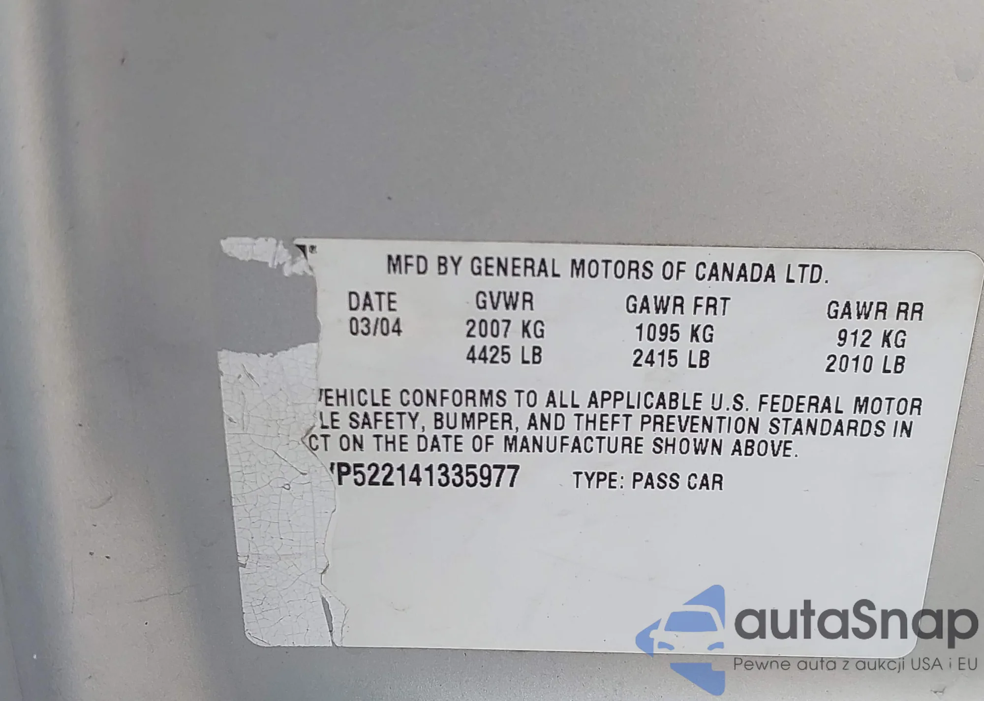 • VIN 2G2WP522141335977