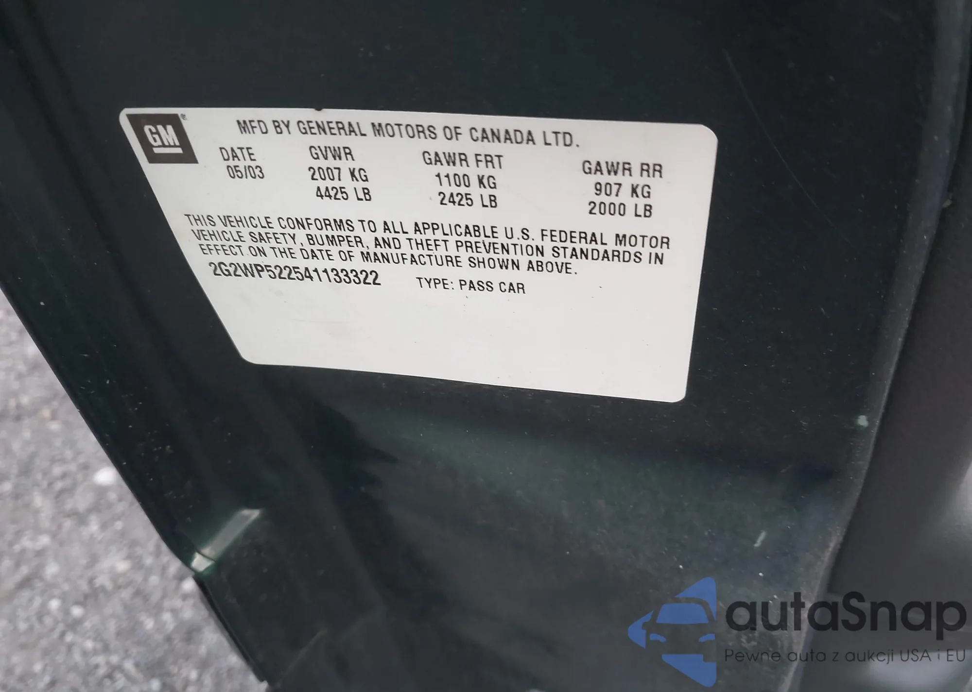• VIN 2G2WP522541133322