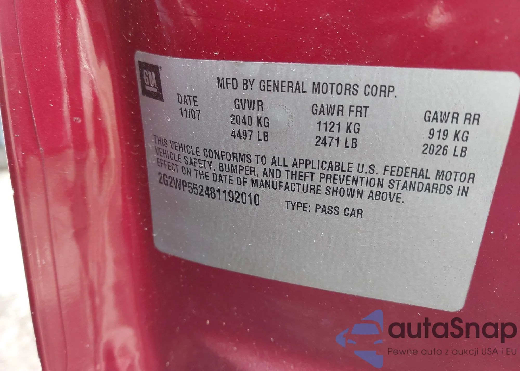 • VIN 2G2WP552481192010