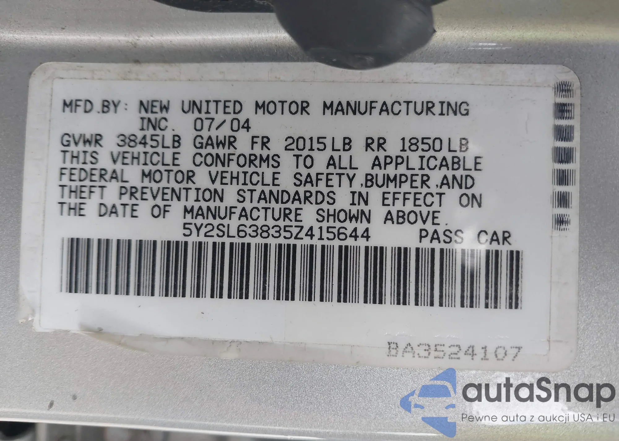 • VIN 5Y2SL63835Z415644