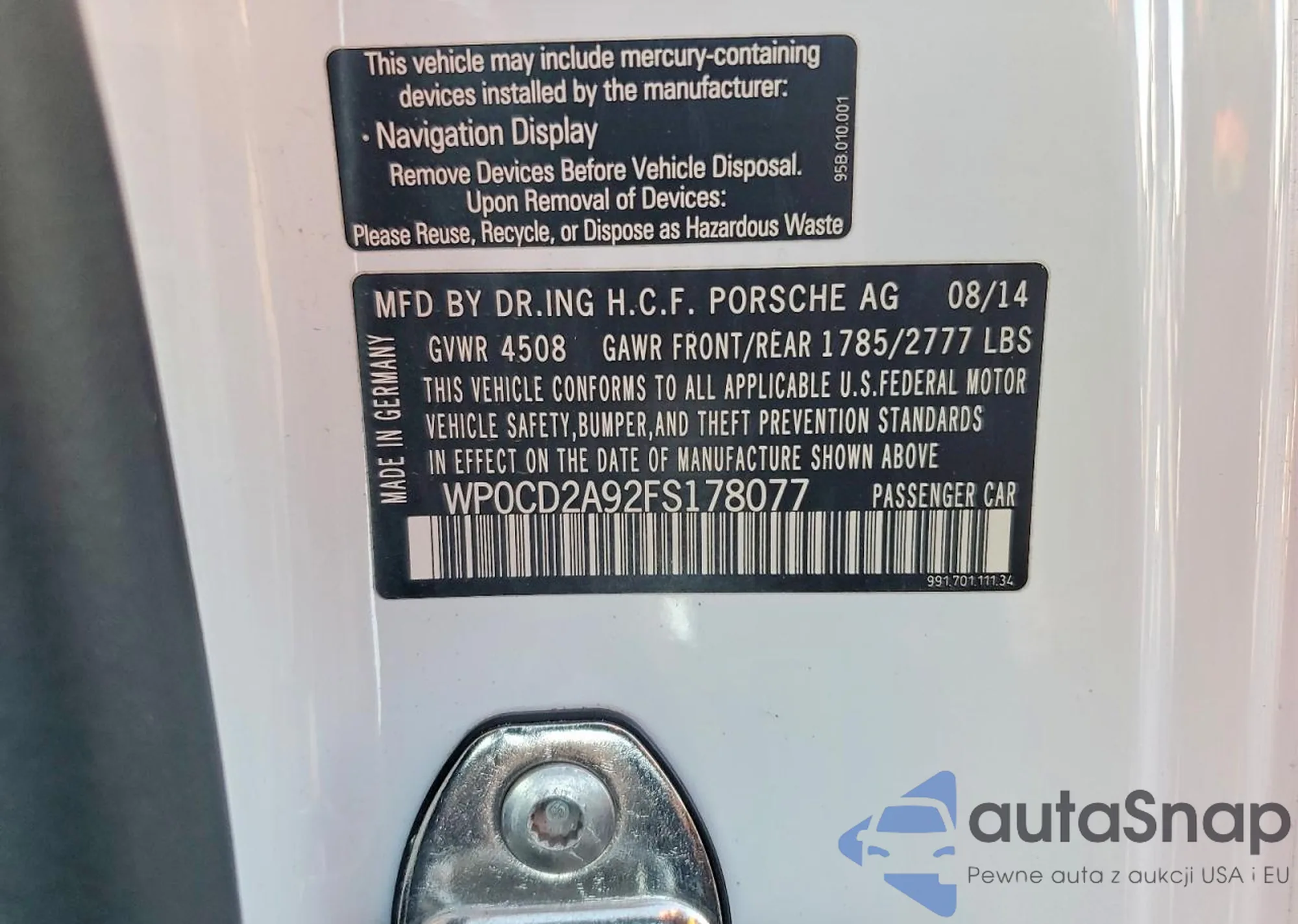 LOT: 72189505 VIN: WP0CD2A92FS178077