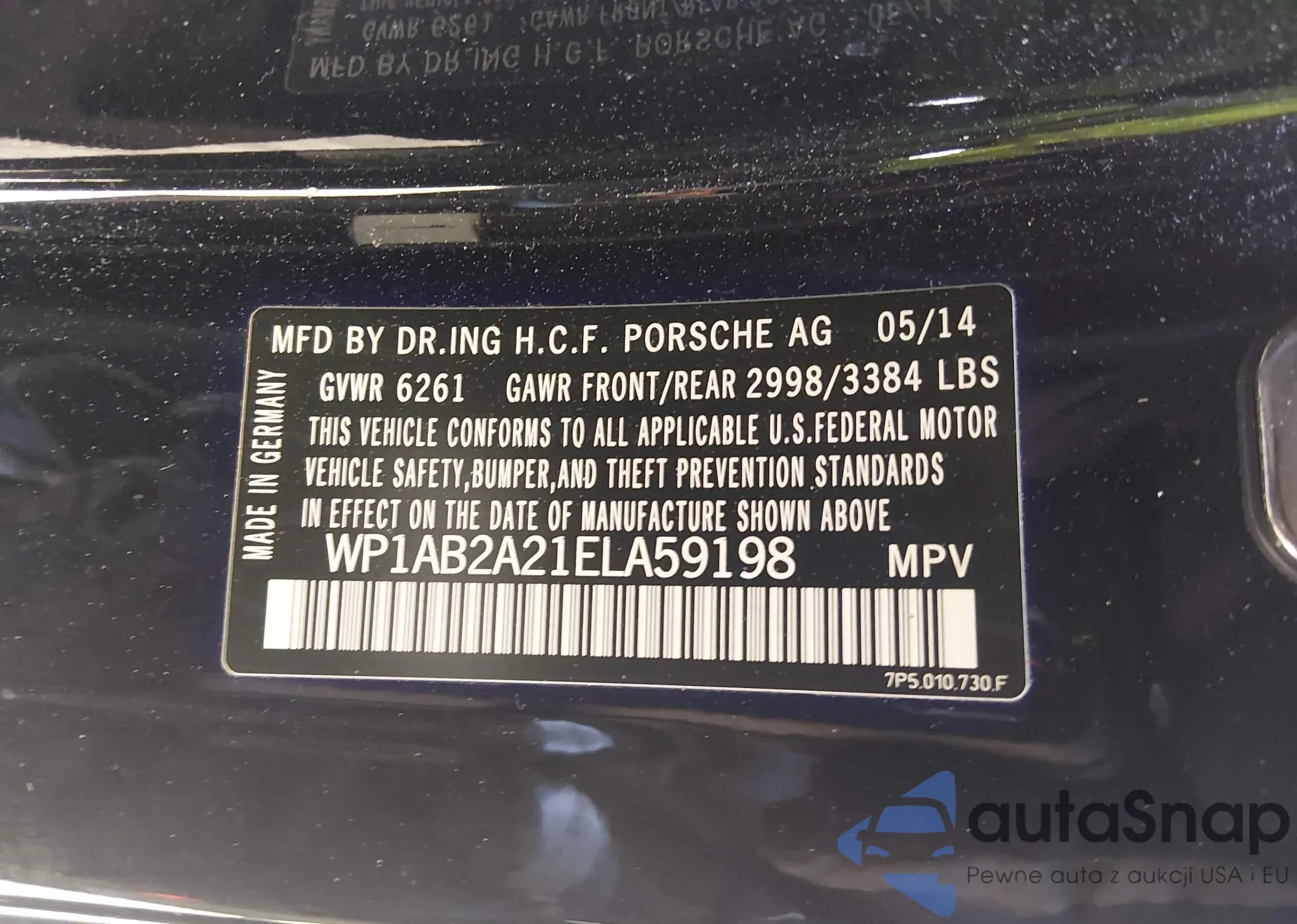 LOT: 44650780 VIN: WP1AB2A21ELA59198