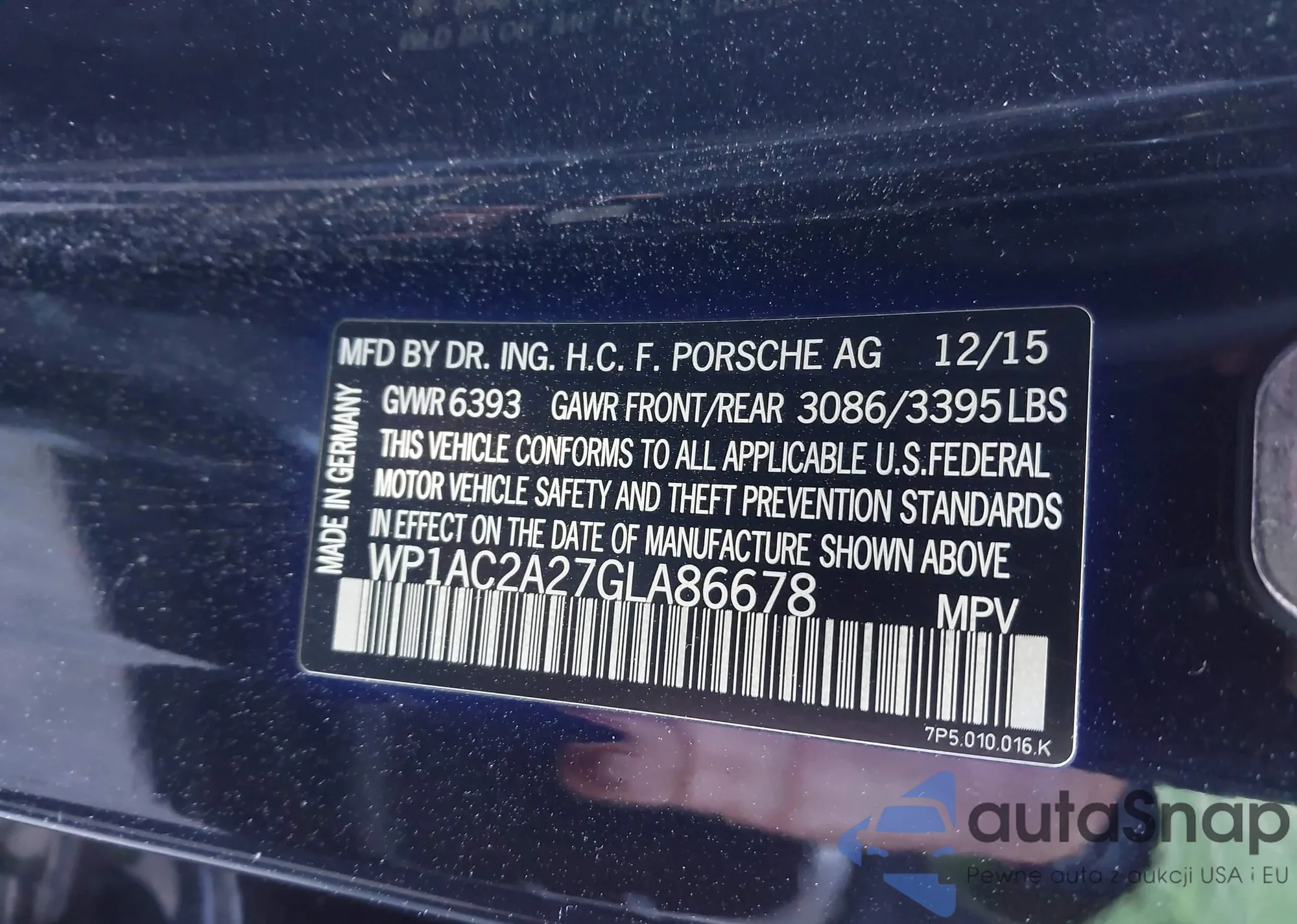 LOT: 44103753 VIN: WP1AC2A27GLA86678