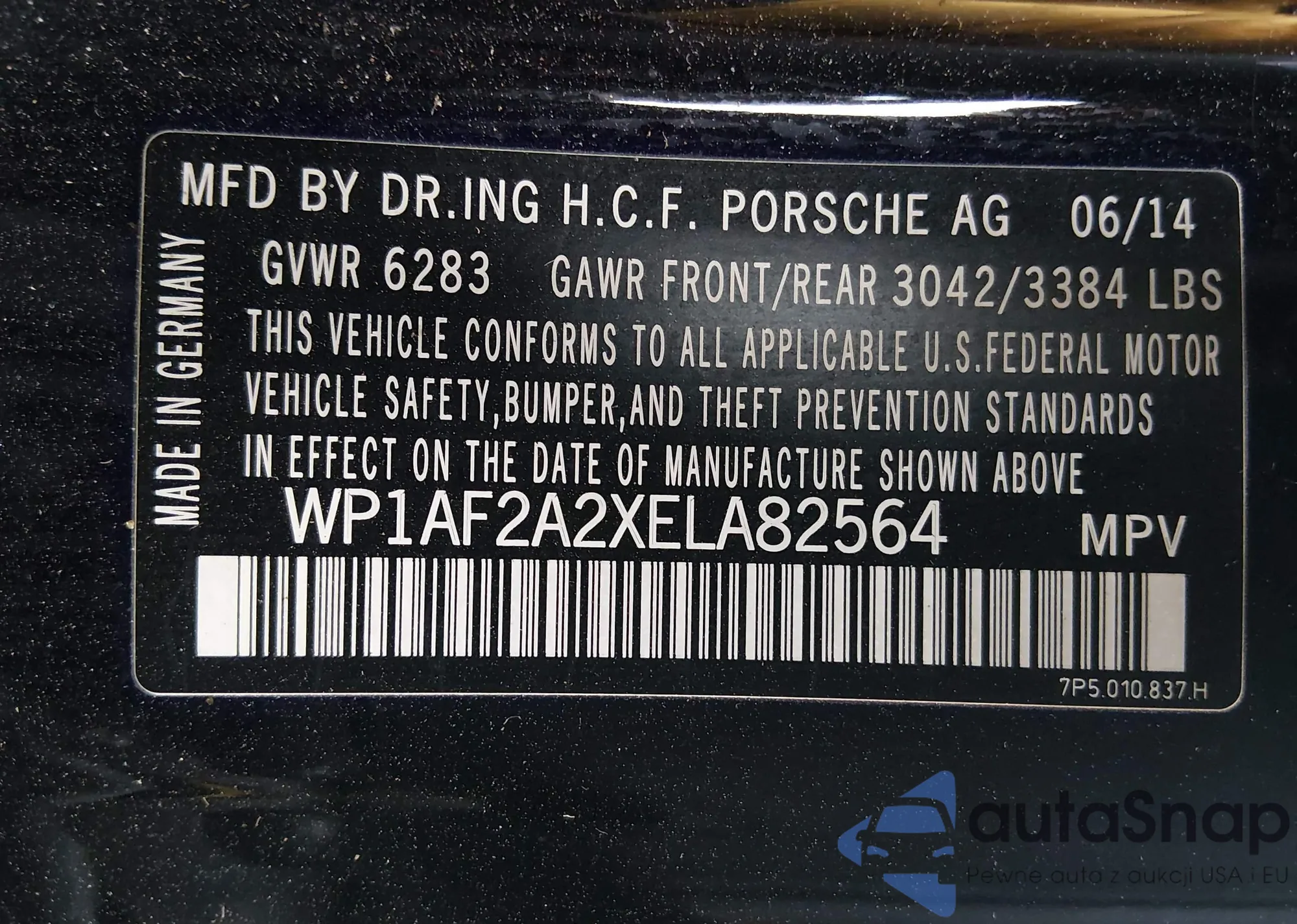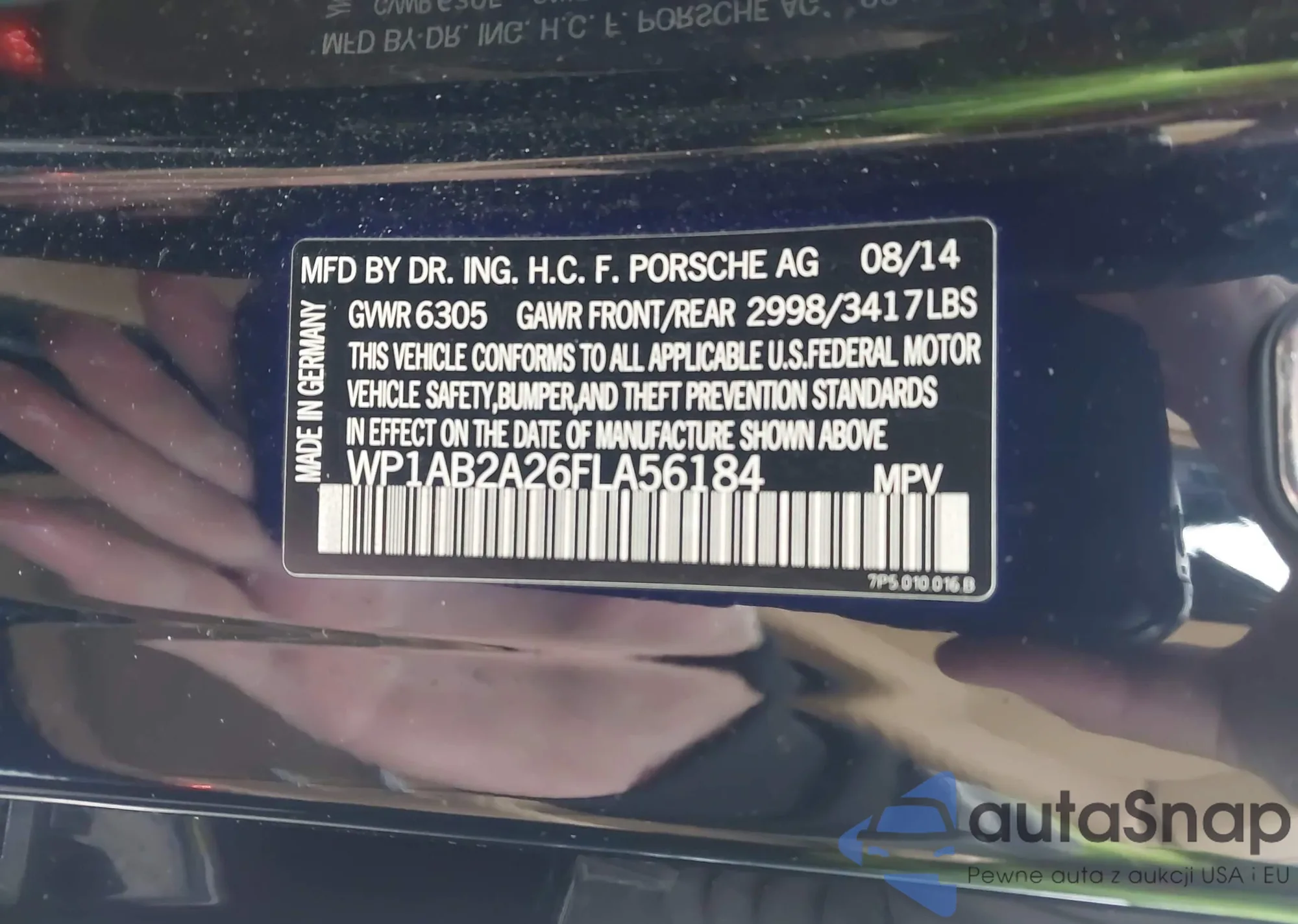 LOT: 44118004 VIN: WP1AB2A26FLA56184