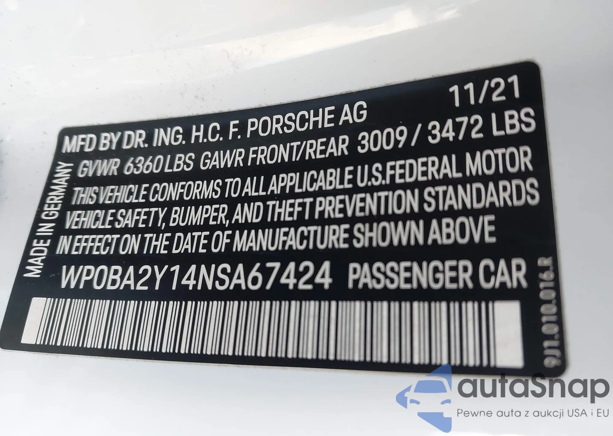 LOT: 44608660 VIN: WP0BA2Y14NSA67424
