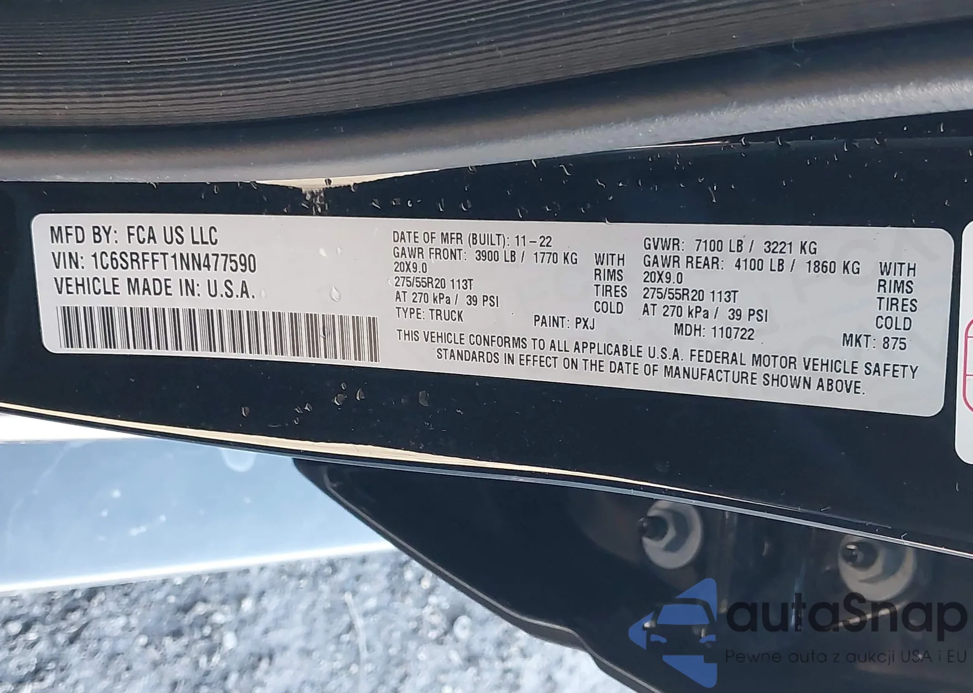LOT: 43998235 VIN: 1C6SRFFT1NN477590