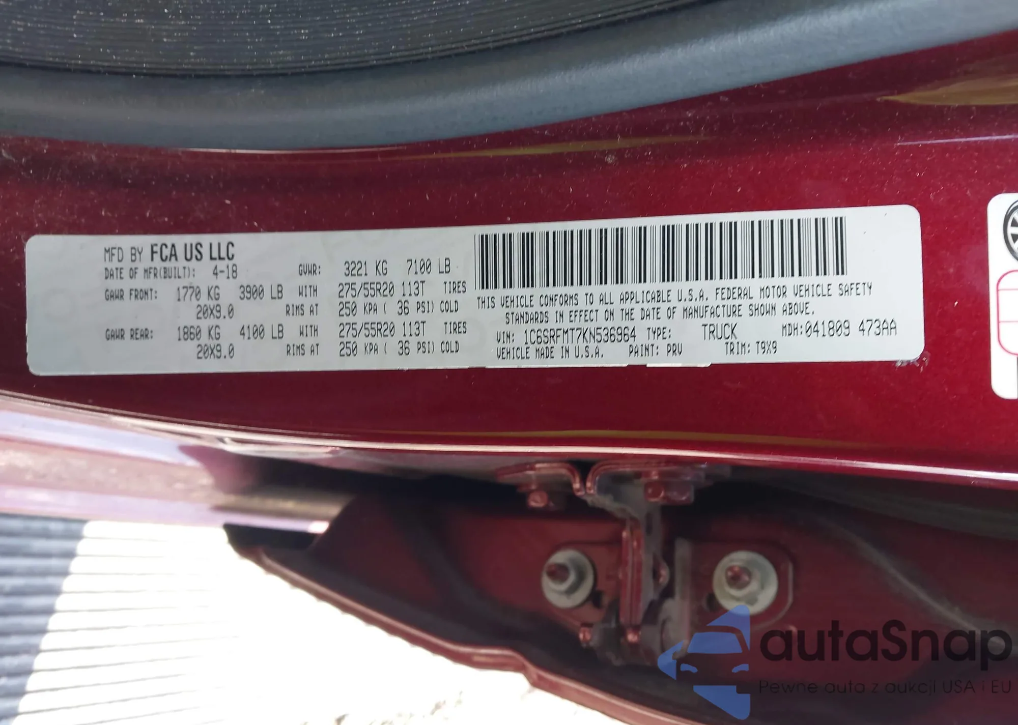 • VIN 1C6SRFMT7KN536964