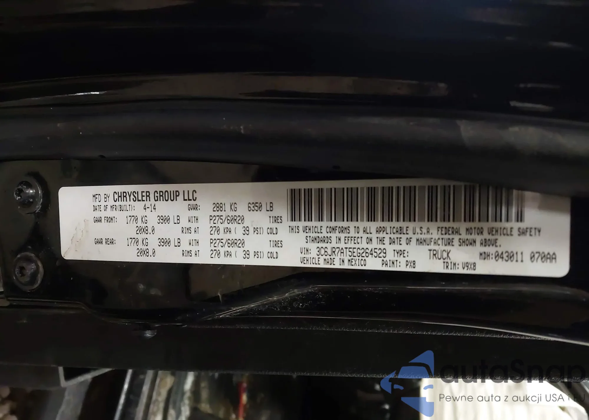 • VIN 3C6JR7AT9DG508066