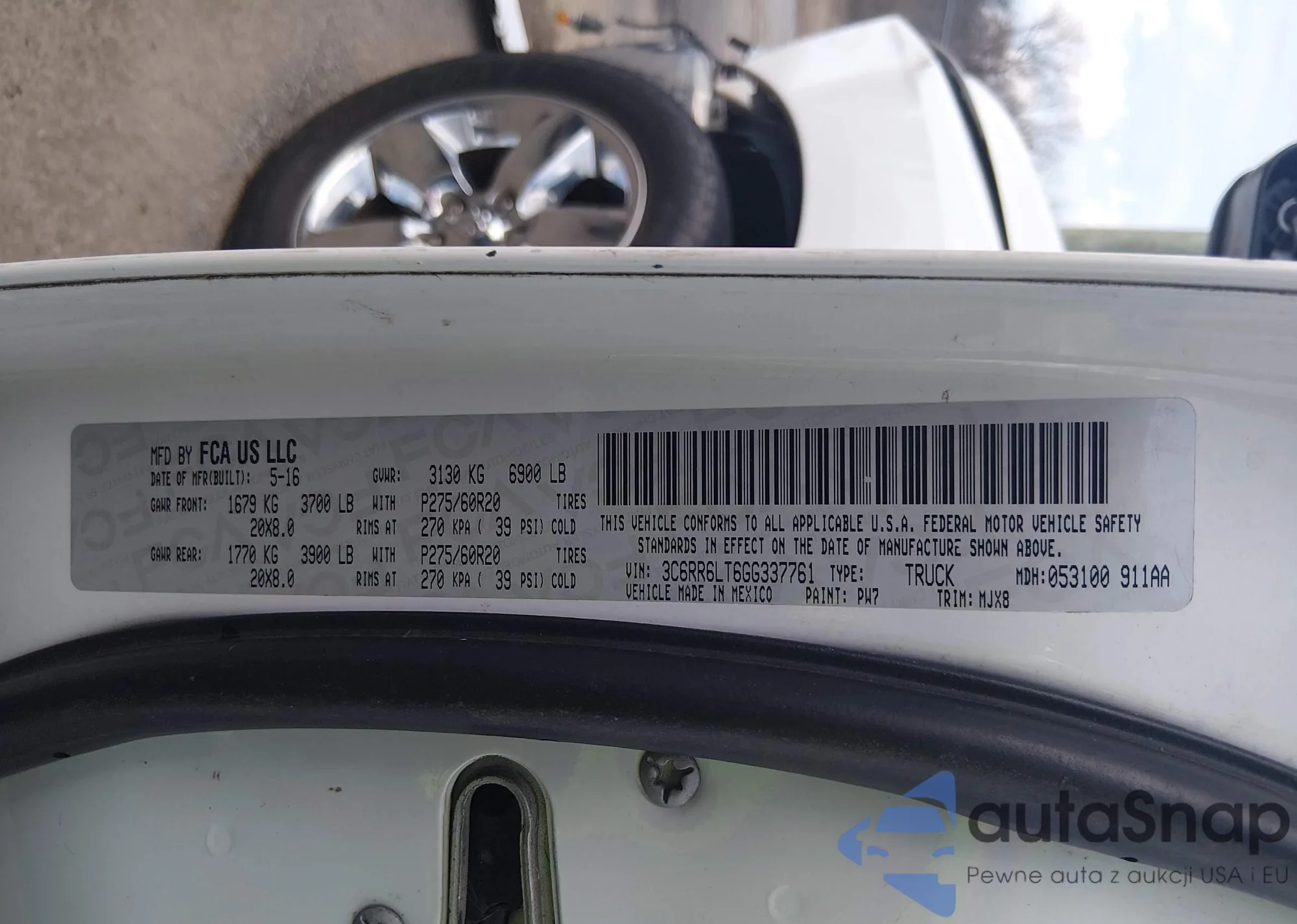 • VIN 3C6RR6LT6GG337761