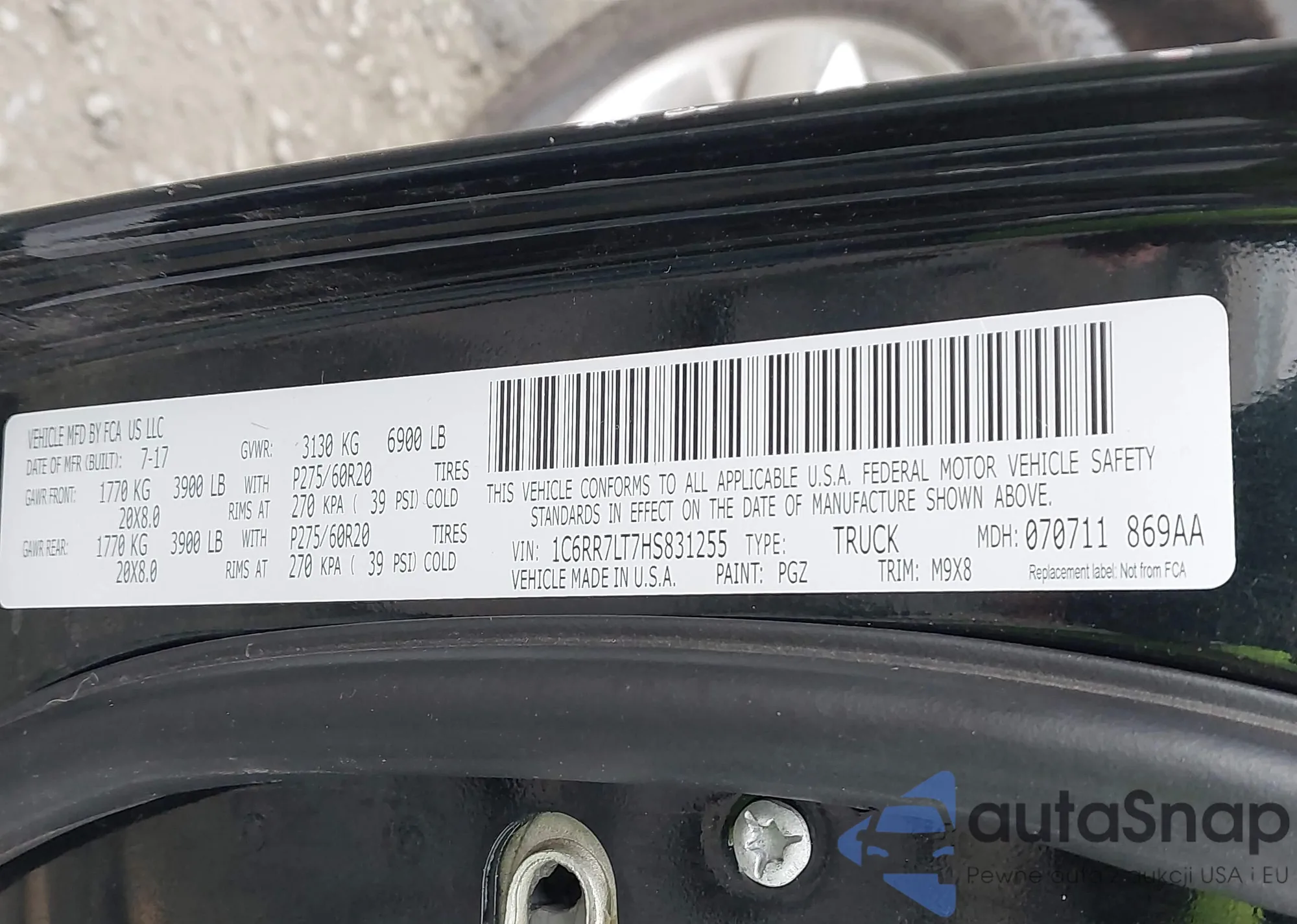 • VIN 1C6RR7LT7HS831255