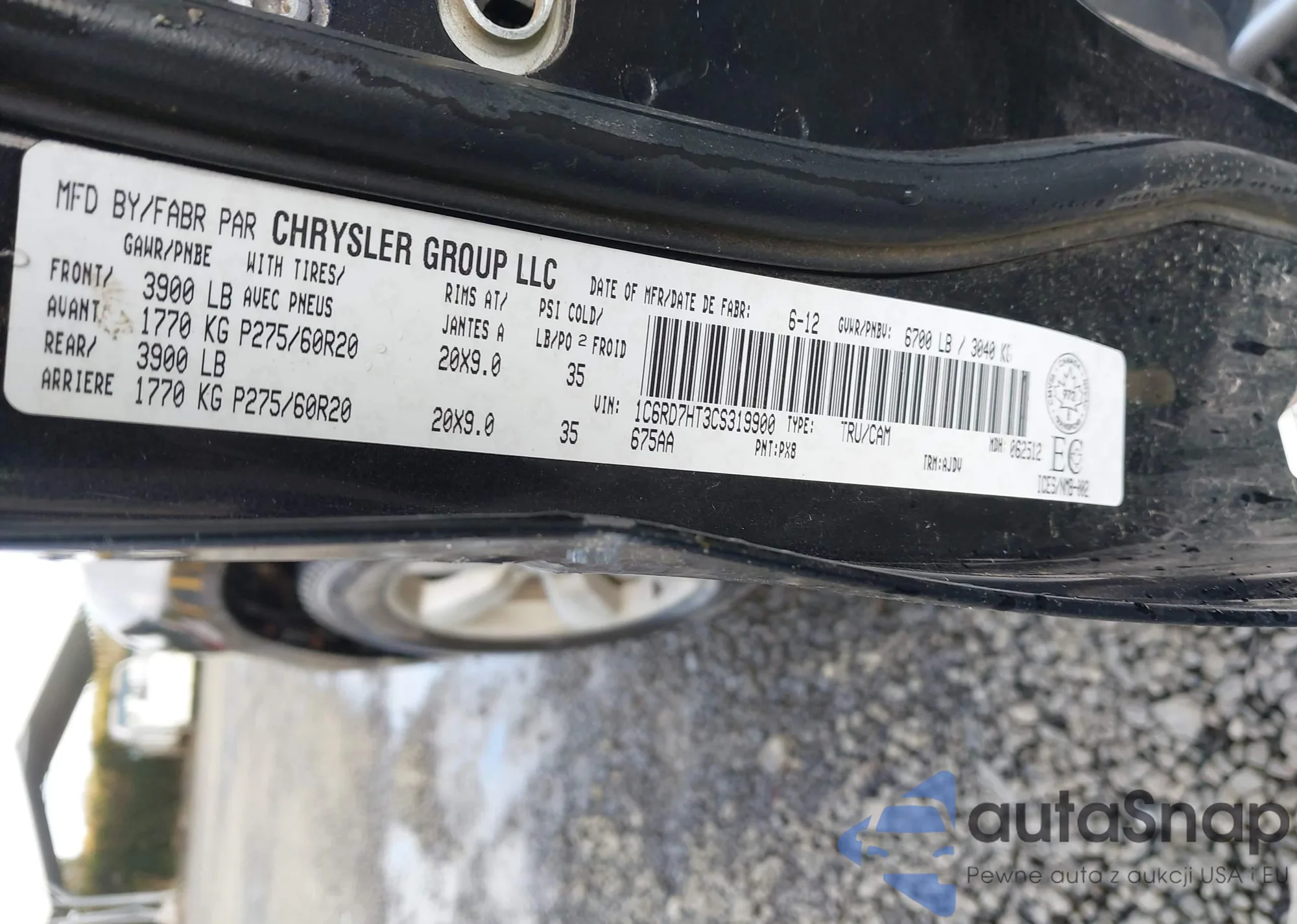 LOT: 43630357 VIN: 1C6RD7HT3CS319900