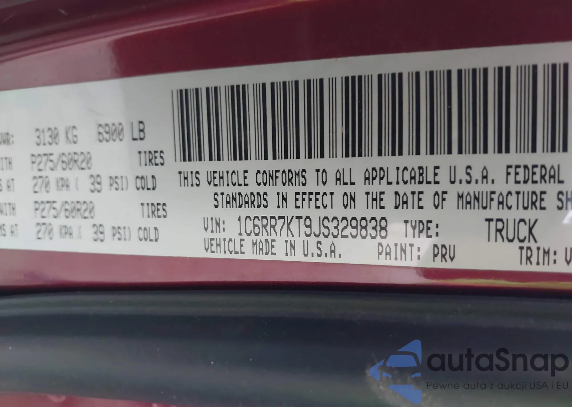 • VIN 1C6RR7KT9JS329838