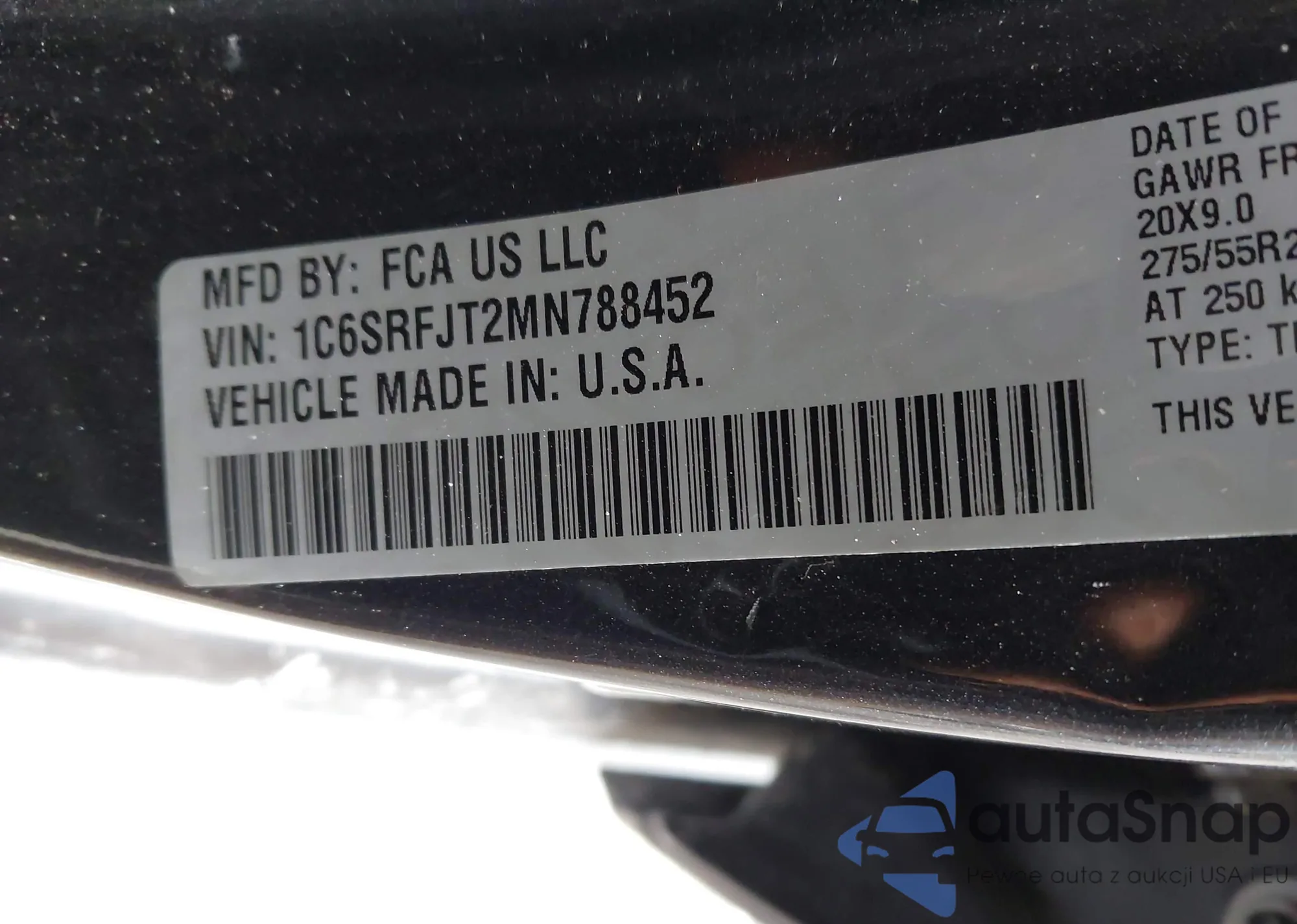 • VIN 1C6SRFJT2MN788452