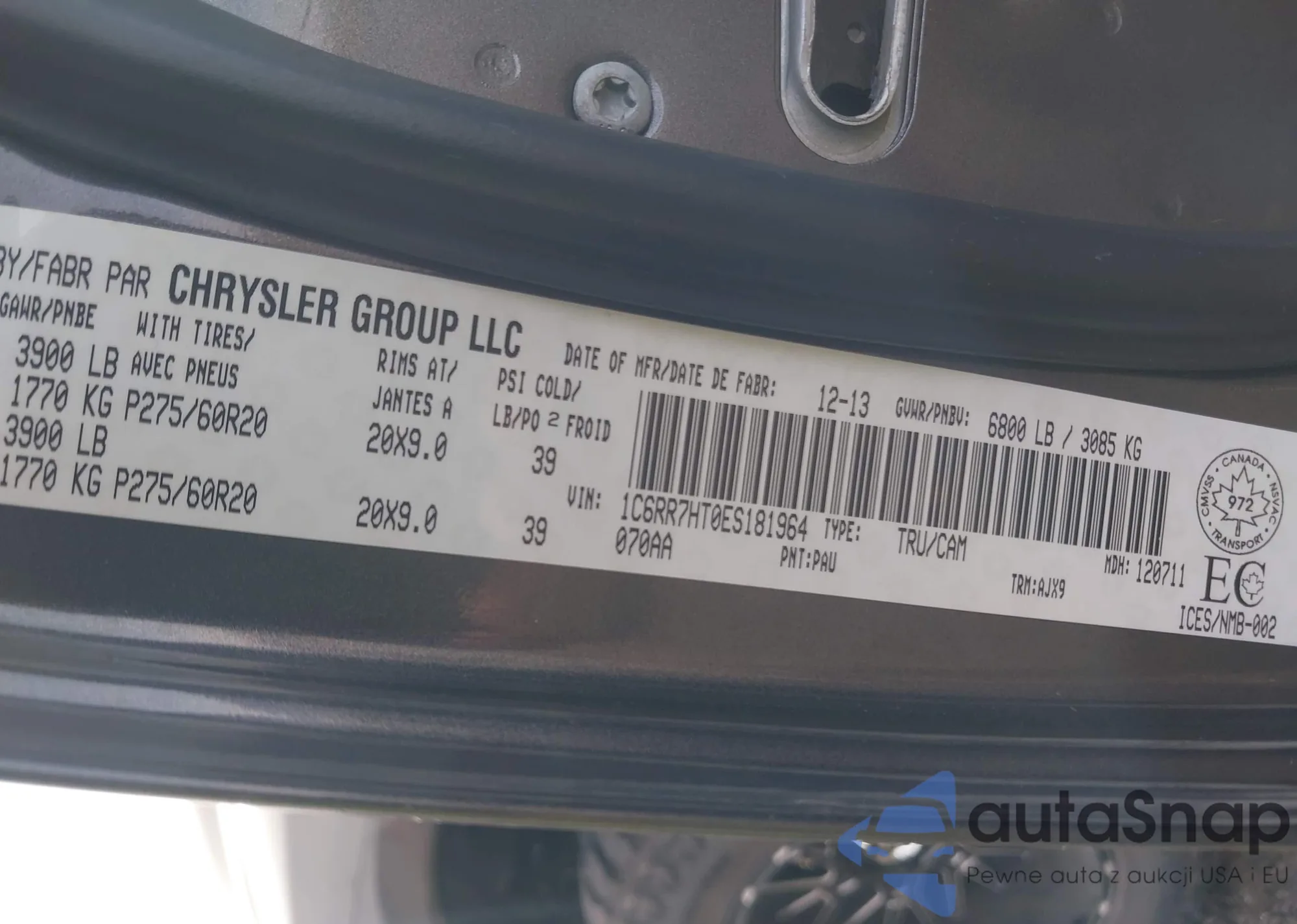 • VIN 1C6RR7HT0ES181964