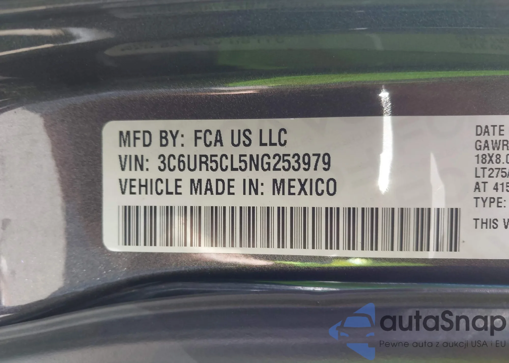 • VIN 3C6UR5CL5NG253979
