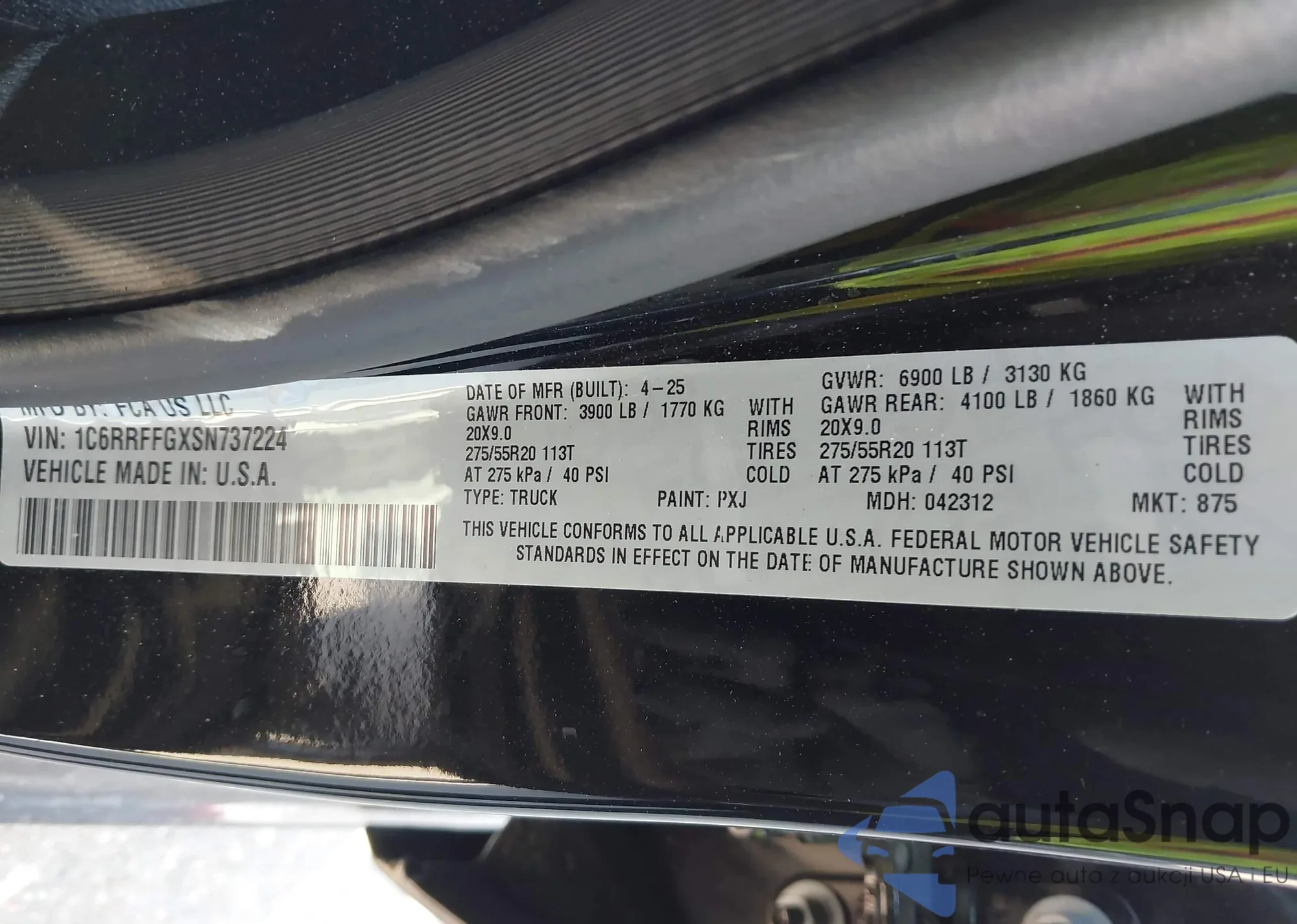 • VIN 1C6RRFFGXSN737224