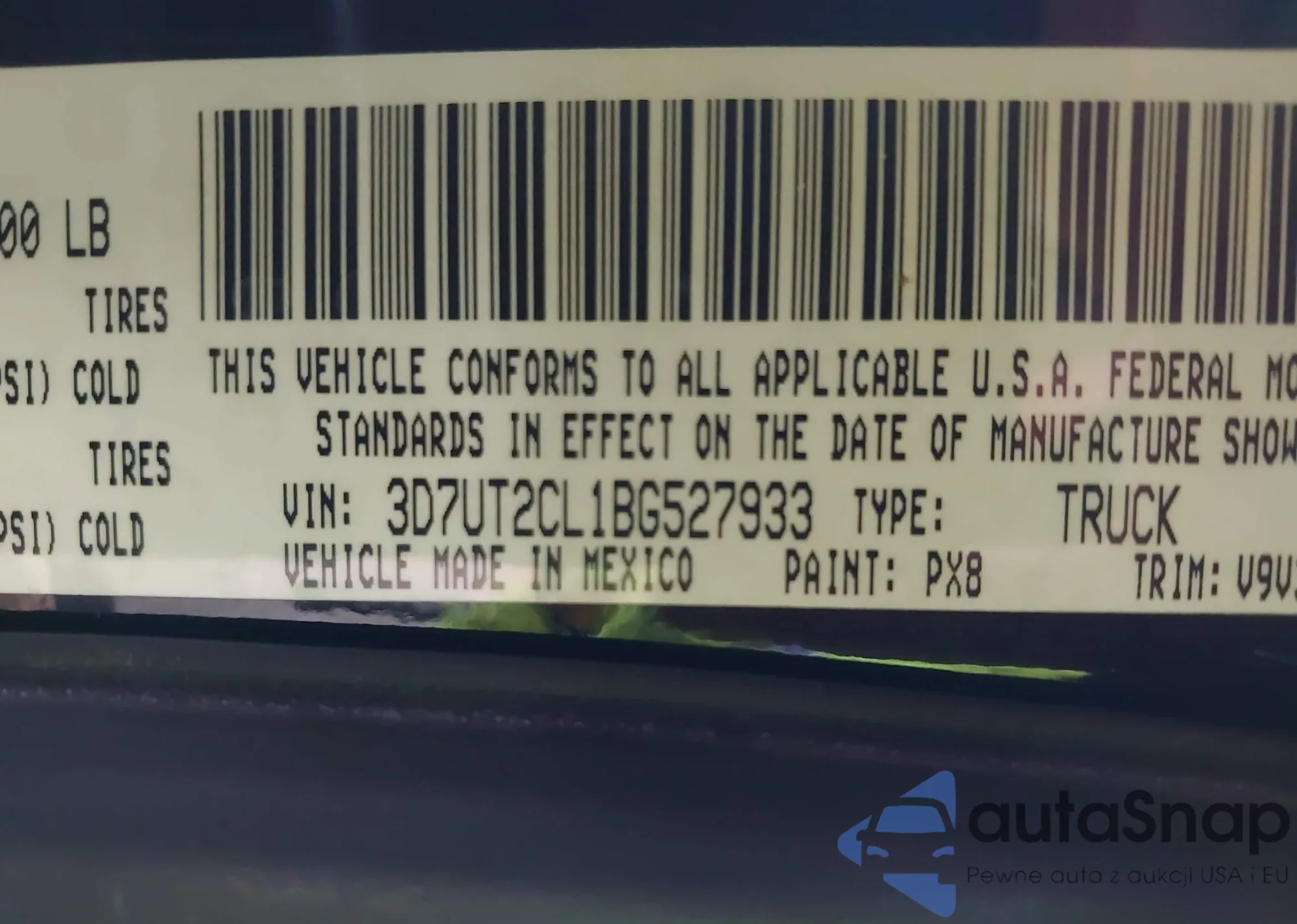 • VIN 3D7UT2CL1BG527933