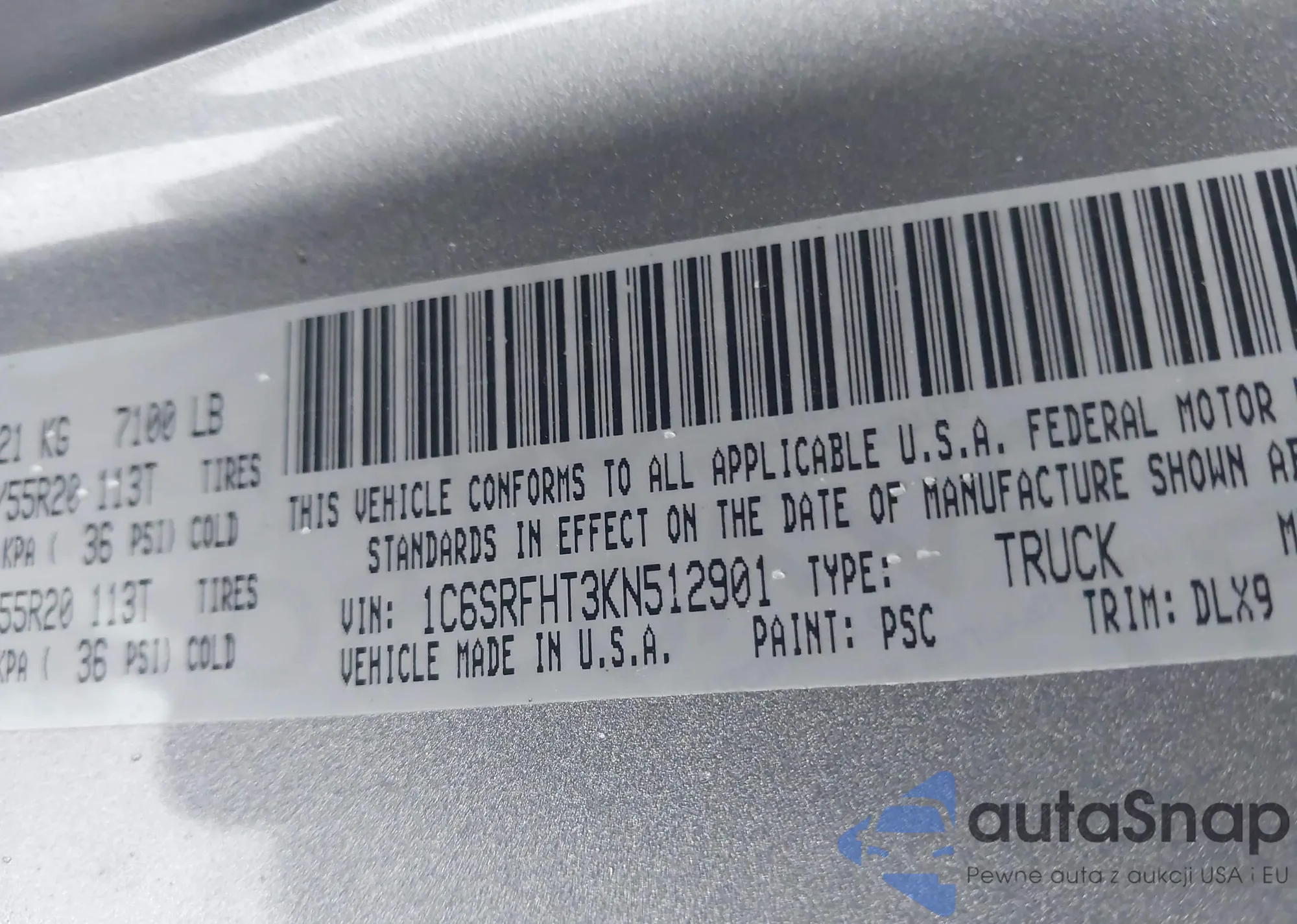 LOT: 43994800 VIN: 1C6SRFHT3KN512901