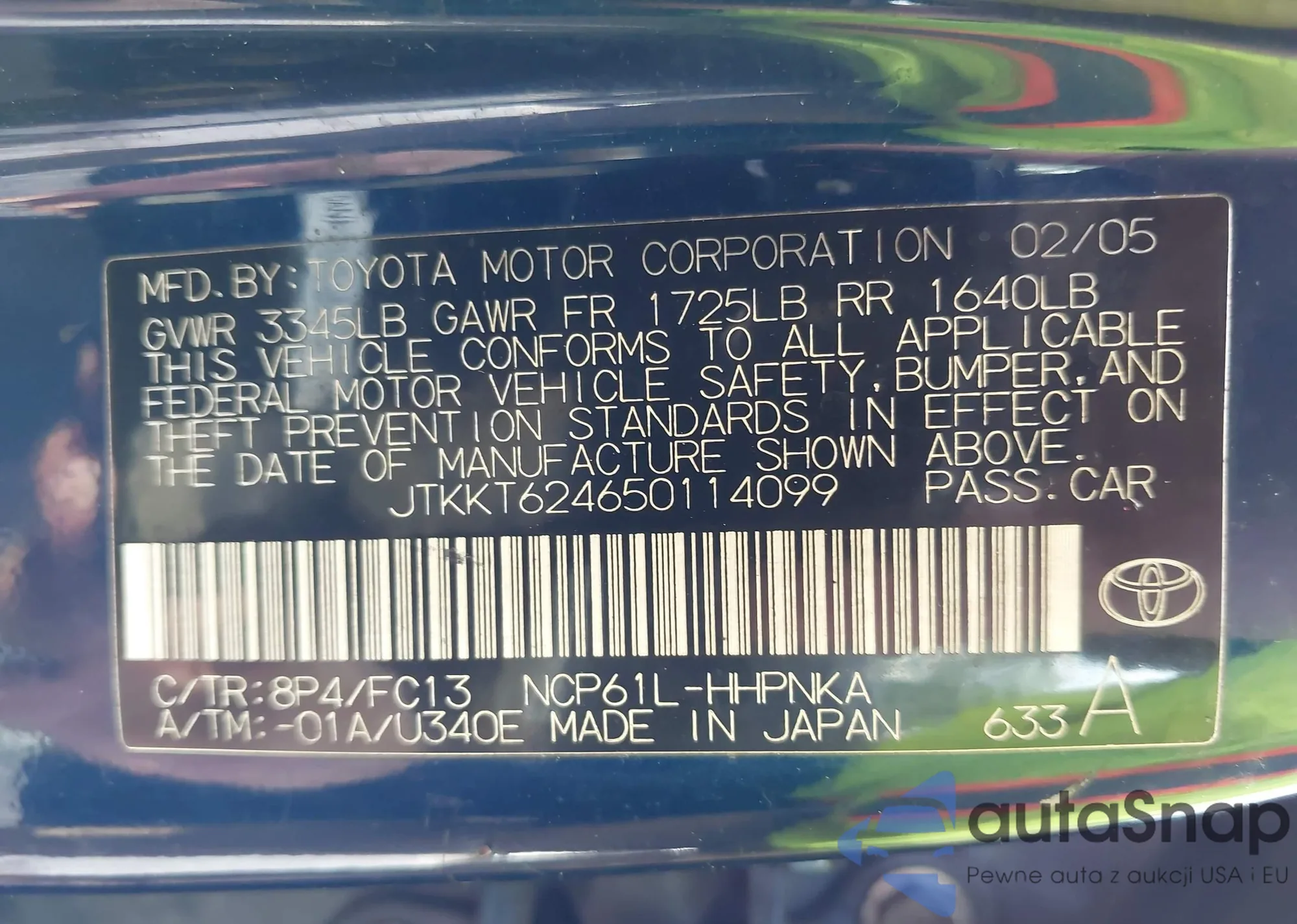 LOT: 43244964 VIN: JTKKT624650114099