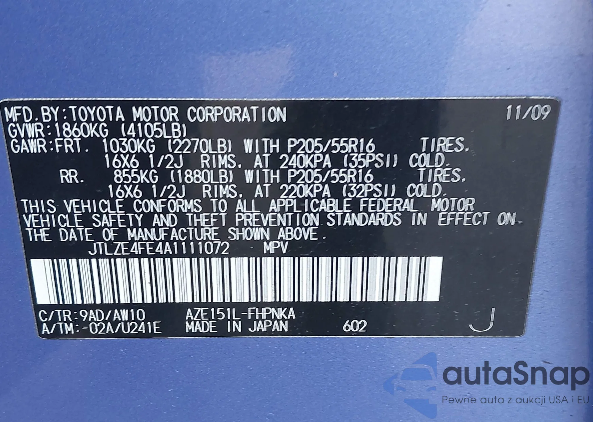• VIN JTLZE4FE4A1111072