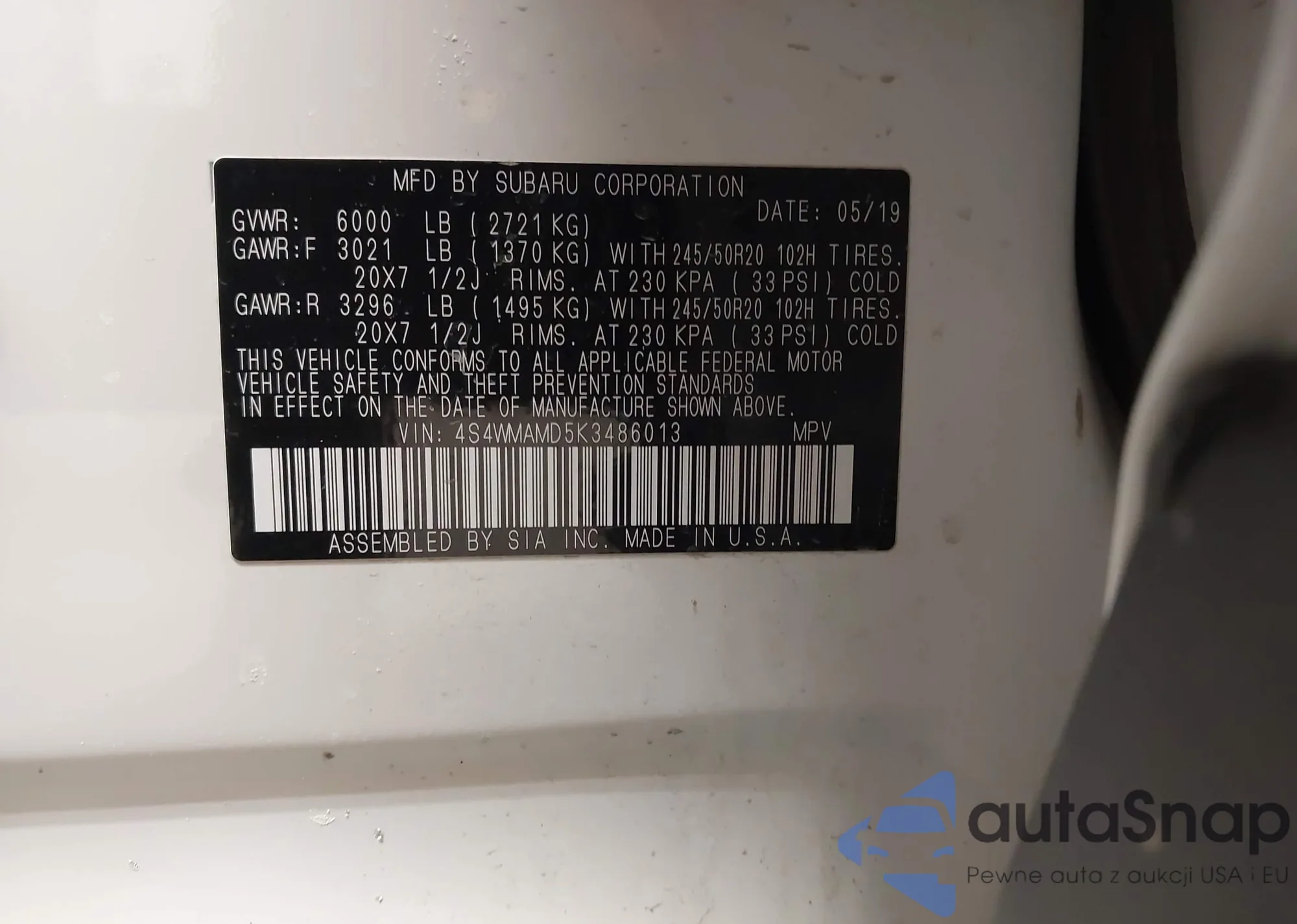 • VIN 4S4WMAMD5K3486013