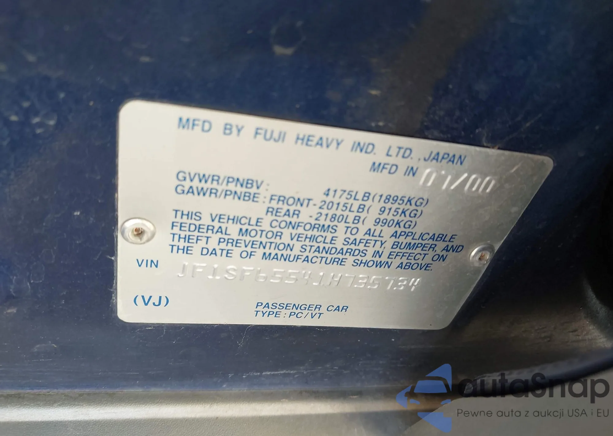 LOT: 43395053 VIN: JF1SF65541H735734