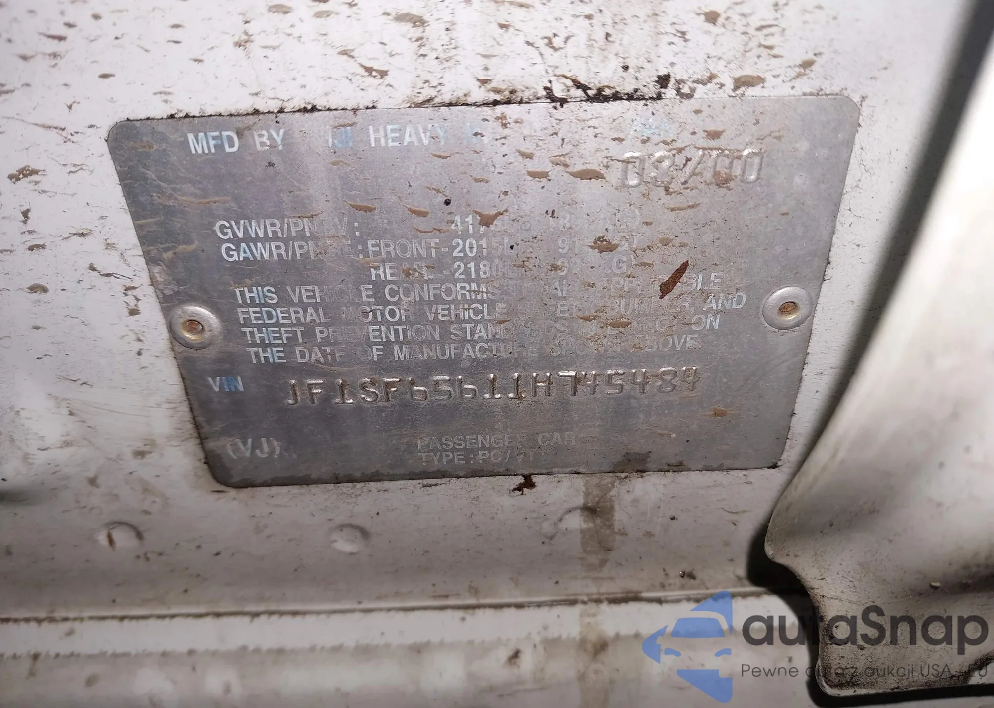LOT: 44005068 VIN: JF1SF63521H716070