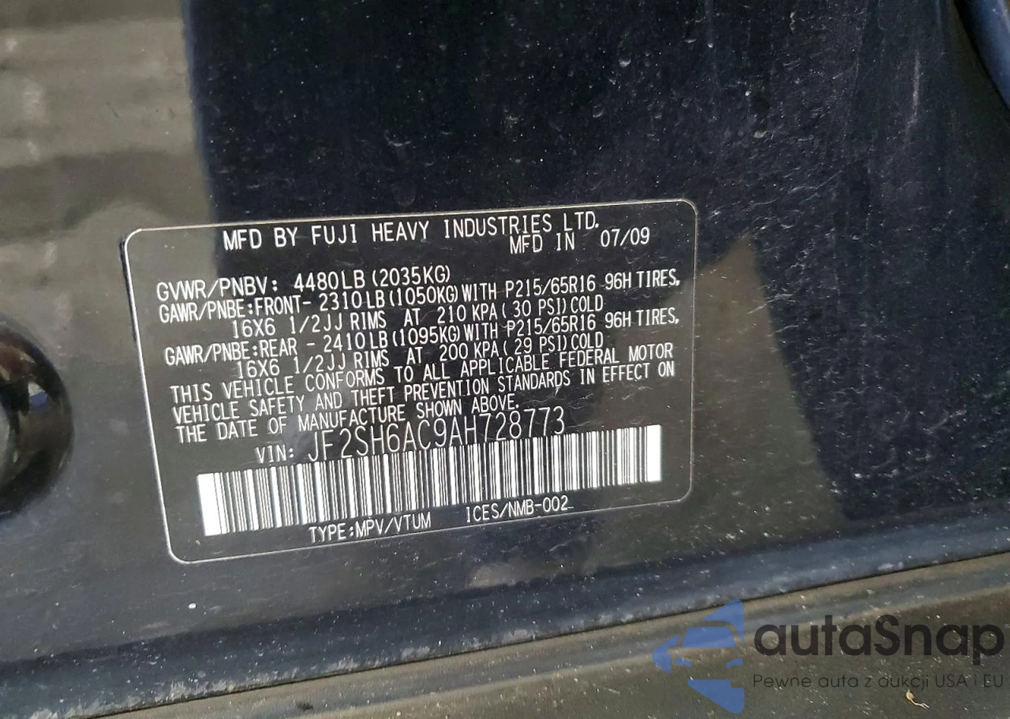 • VIN JF2SH6AC9AH728773