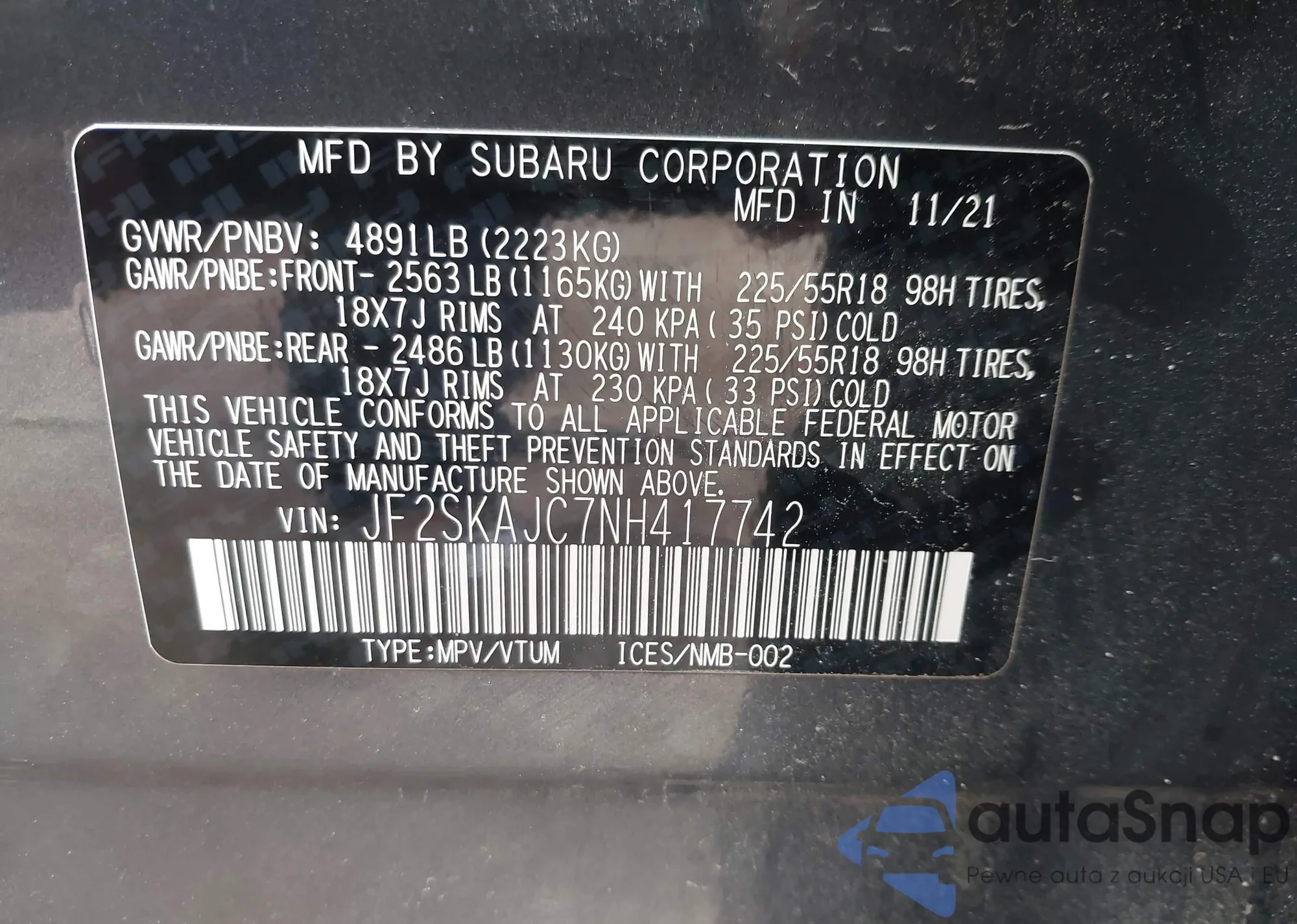 • VIN JF2SKAJC7NH417742
