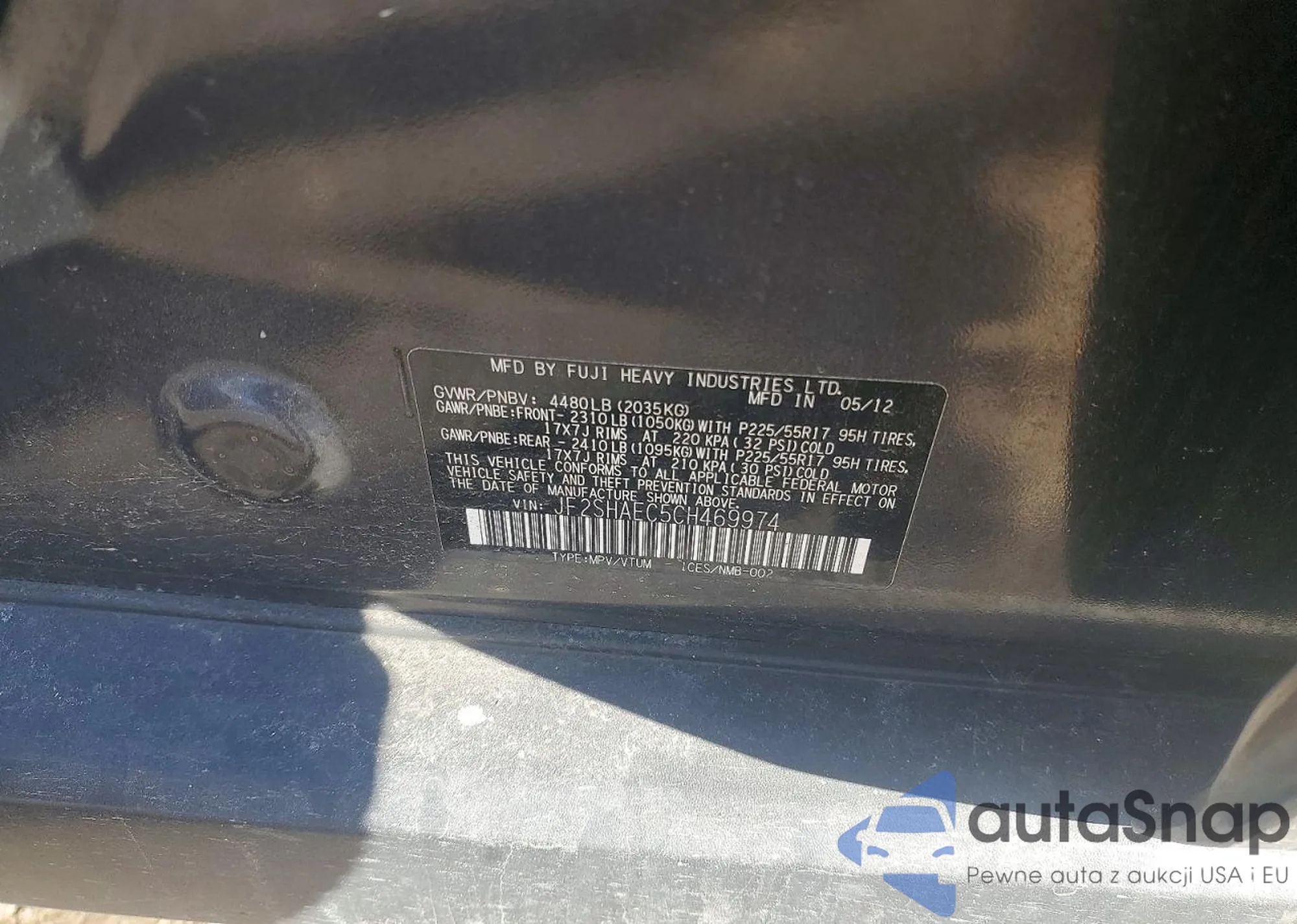 • VIN JF2SHAEC5CH469974