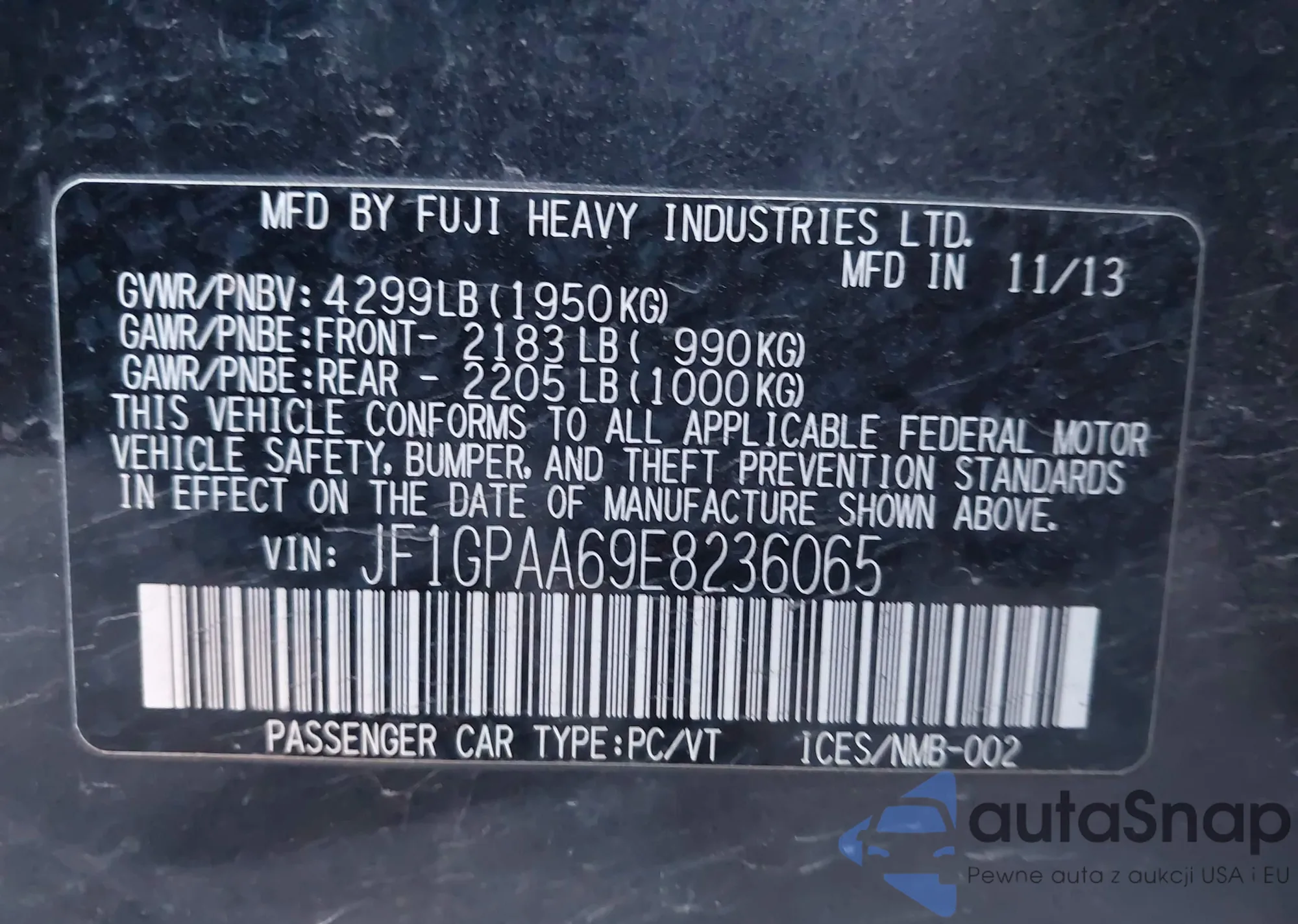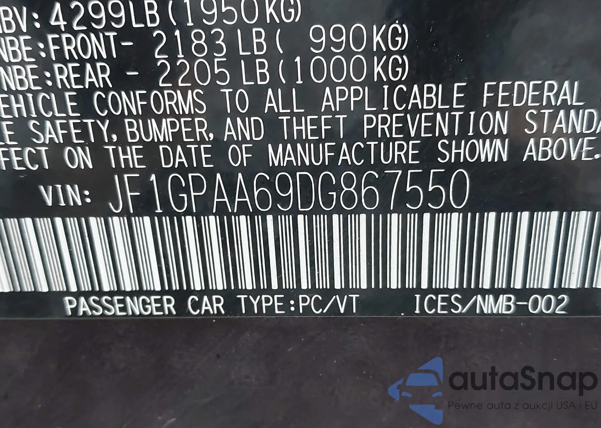 • VIN JF1GPAA69DG867550